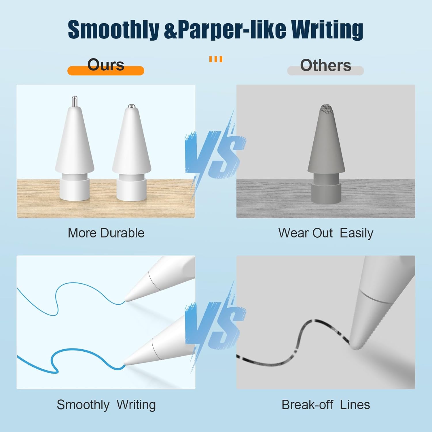 - ăWear-Resistance Replacement Tipsă Crafted with anti-scratch copper ball material, our replacement tips for Apple Pencil Pro are wear-resistant, preventing scratches on your iPad screen.They offer improved longevity and a smooth writing experience. Additionally, the pencil nib's cover reduces noise and provides added comfort. While these pencil tips offer protection, we still recommend using a glass screen protector for metal tips optimal usage.