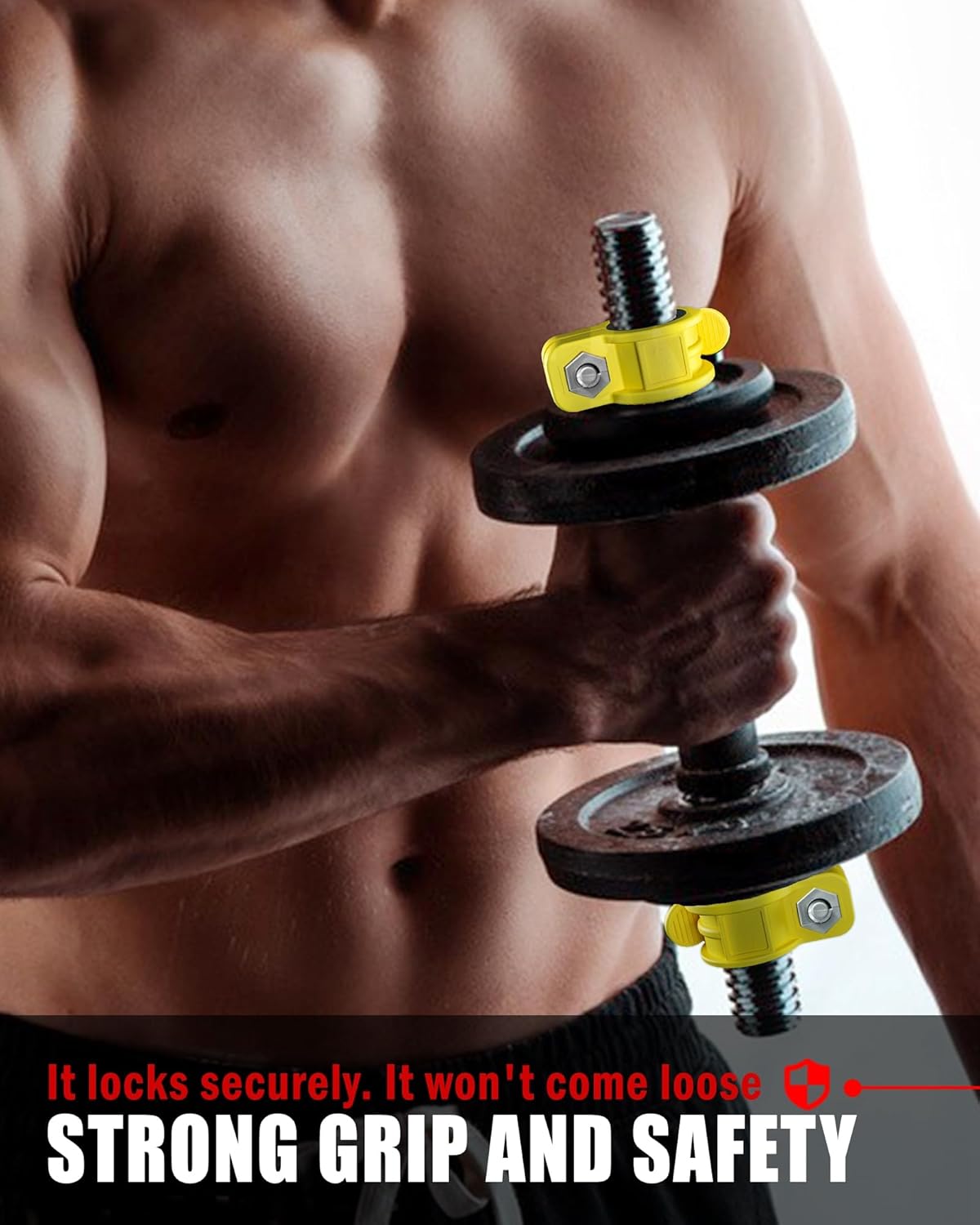 - ✔STRONG GRIP :Weight bar clips are specially designed for weightlifting and designed to provide an extra secure grip.Use these weight clips to hold your weights in place(Weight: 400+lbs)so they don't go rolling around while you're lifting. The proof of strength, even if you hold the dumbbell vertically(Weight: 60lbs), you can keep the weight! These weightlifting clips are perfect for dumbbell rows,benching, squatting etc.