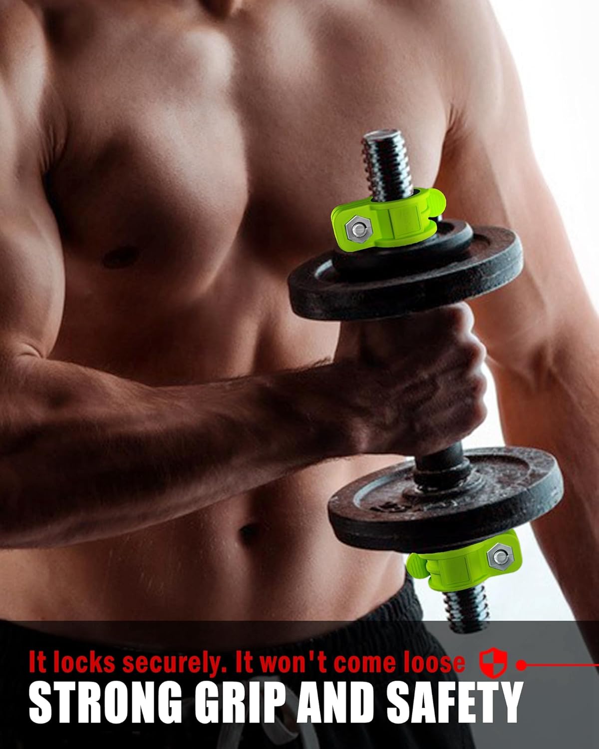 - ✔STRONG GRIP :Weight bar clips are specially designed for weightlifting and designed to provide an extra secure grip.Use these weight clips to hold your weights in place(Weight: 400+lbs)so they don't go rolling around while you're lifting. The proof of strength, even if you hold the dumbbell vertically(Weight: 60lbs), you can keep the weight! These weightlifting clips are perfect for dumbbell rows,benching, squatting etc.