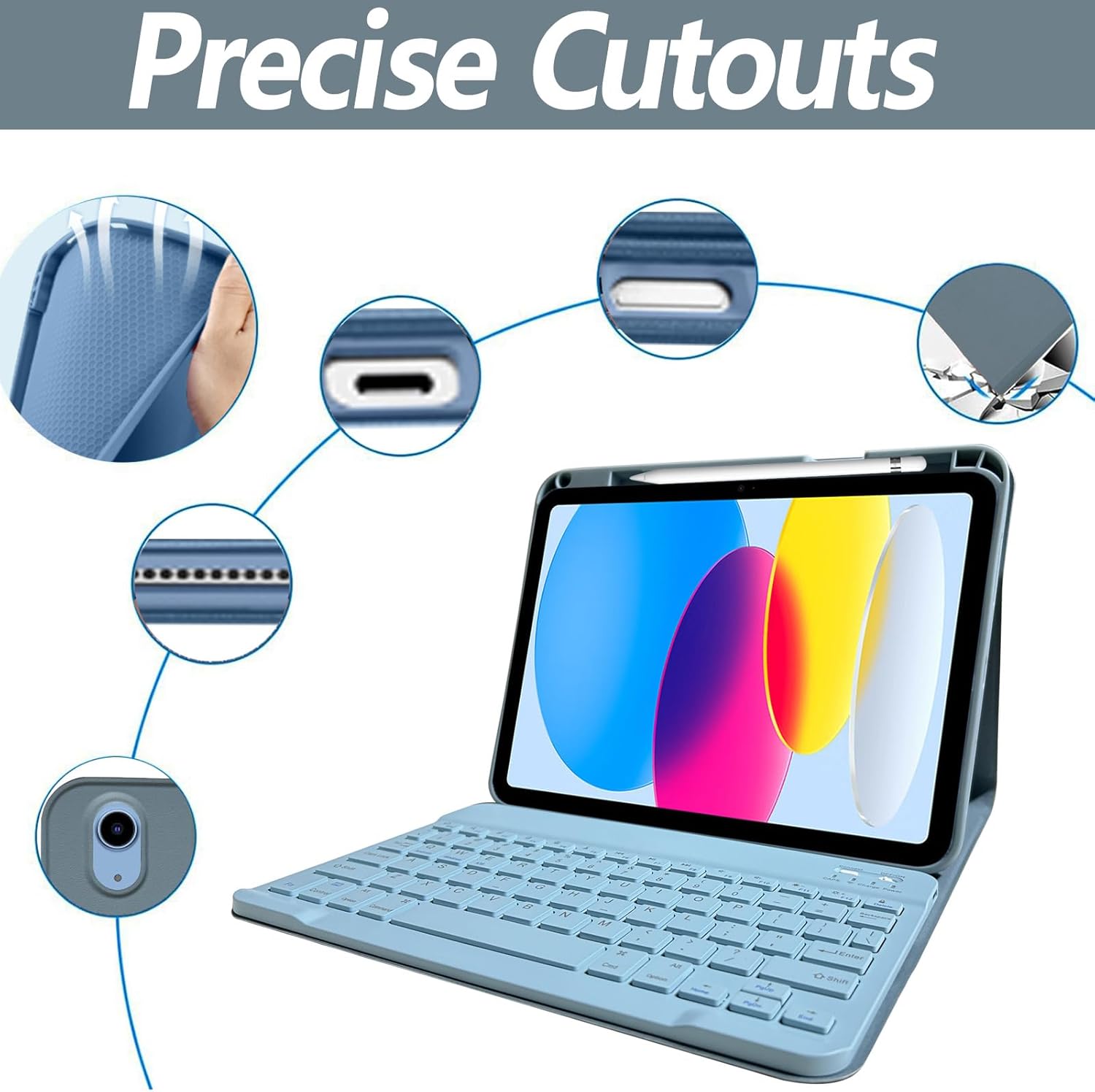 Keyboard Case for iPad 11th 10th Generation - iPad 10th Generation Case with Detachable Wireless Keyboard - Smart Folio Cover with Pencil Holder for 11-inch A16 2025 10.9-inch 2022, Blue