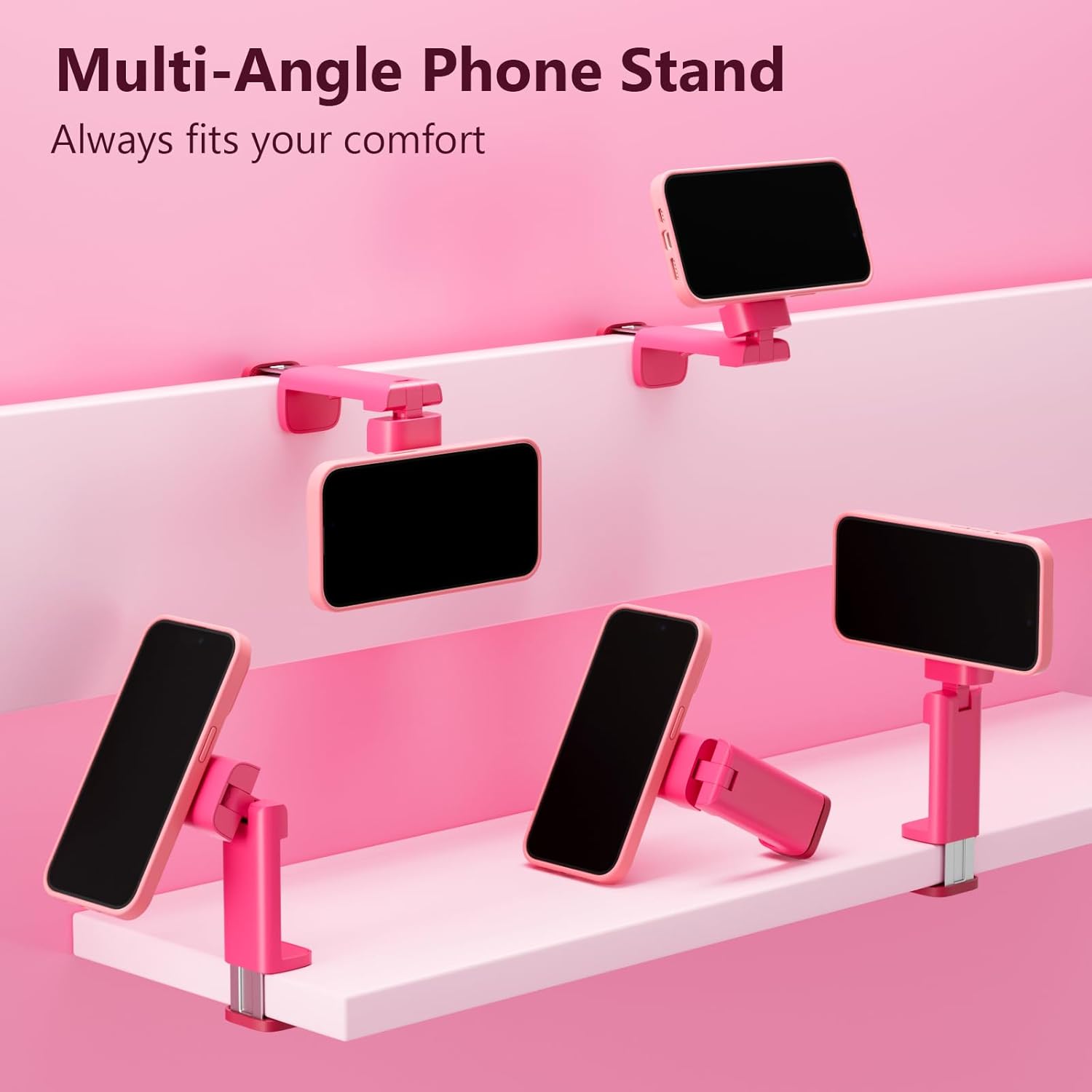 - A Practical and Versatile Gadget: This handy phone stand offers endless possibilities. It can securely hold your phone in various orientations – vertical or horizontal. You can attach it to a luggage handle, tray table, desktop, chair, shelf, bed, or even use it as a short selfie stick.