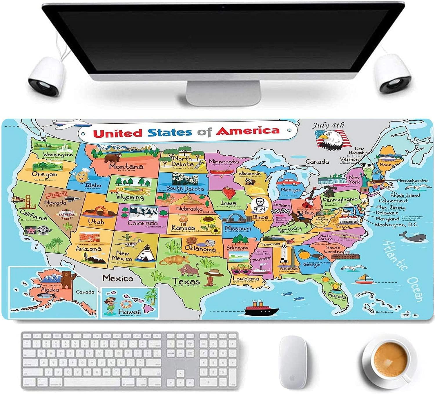 RTGGSEL 31.5x11.8 Inch Non-Slip Long Extended Large Gaming Mouse Pad with Stitched Edges XL Laptops Keyboard Mouse Mat(American Map)