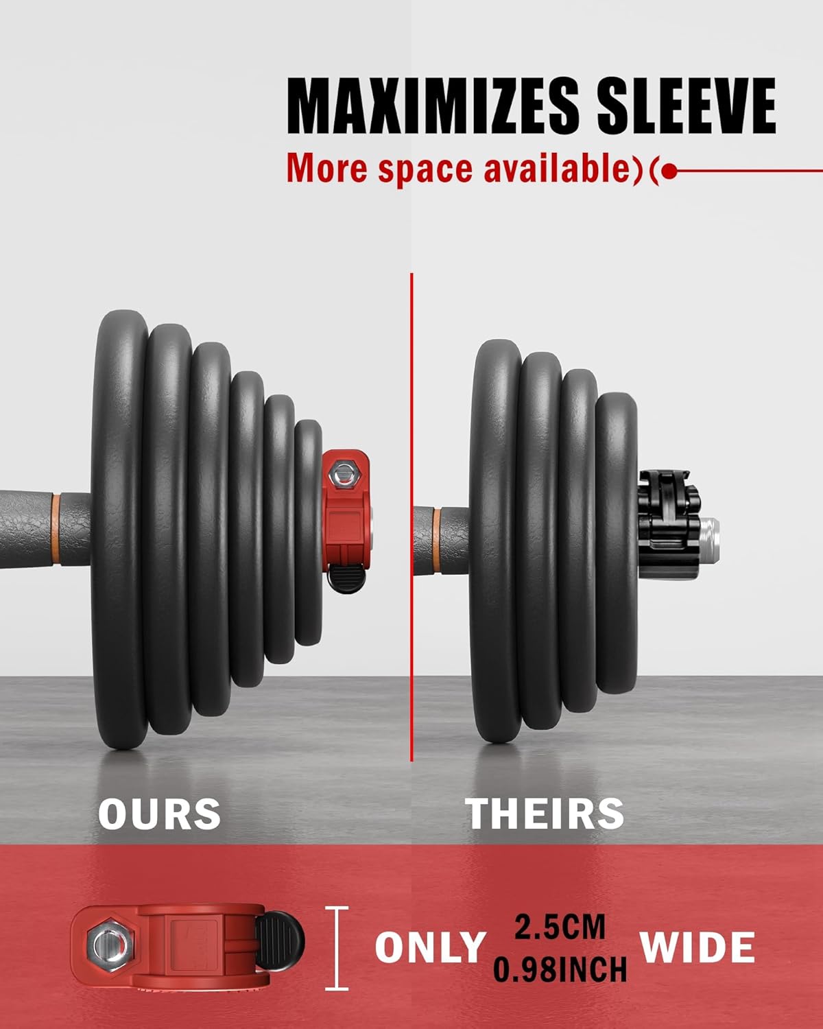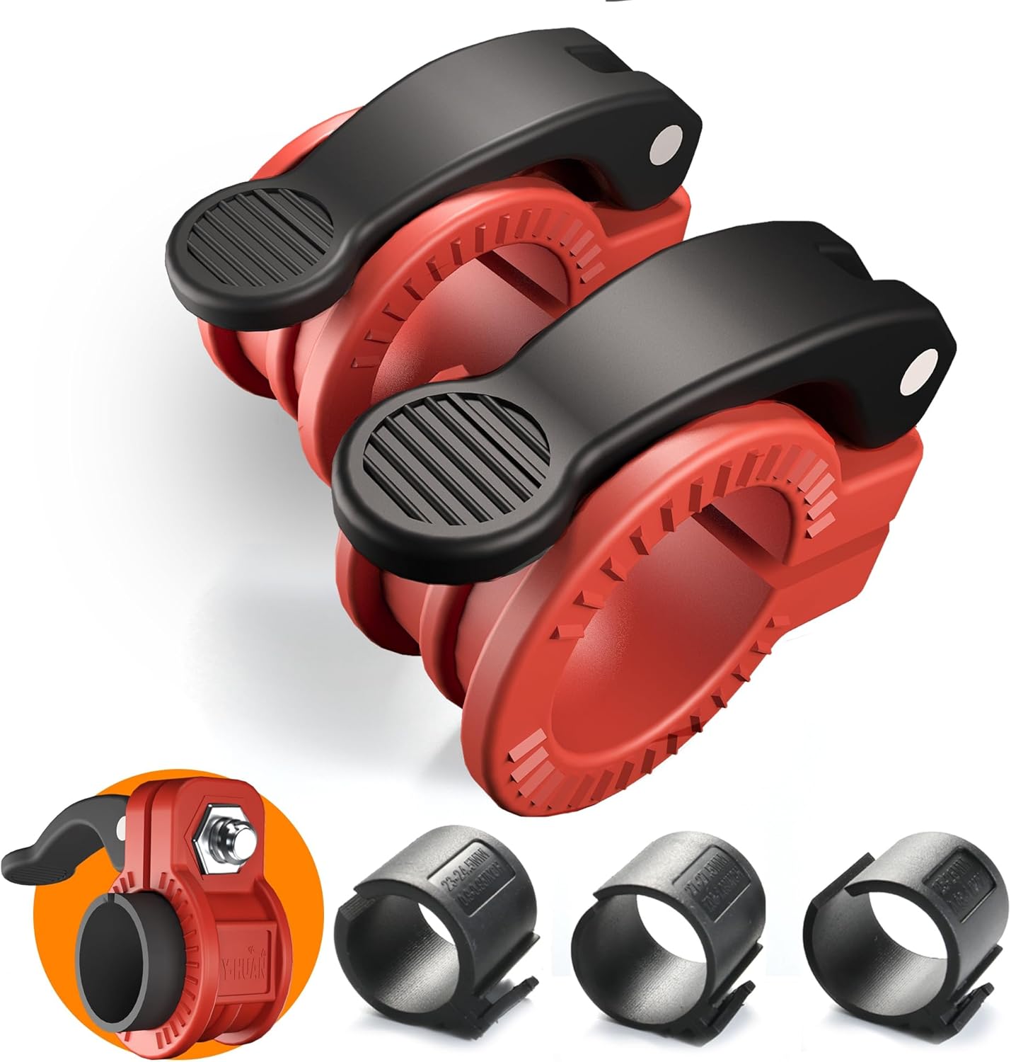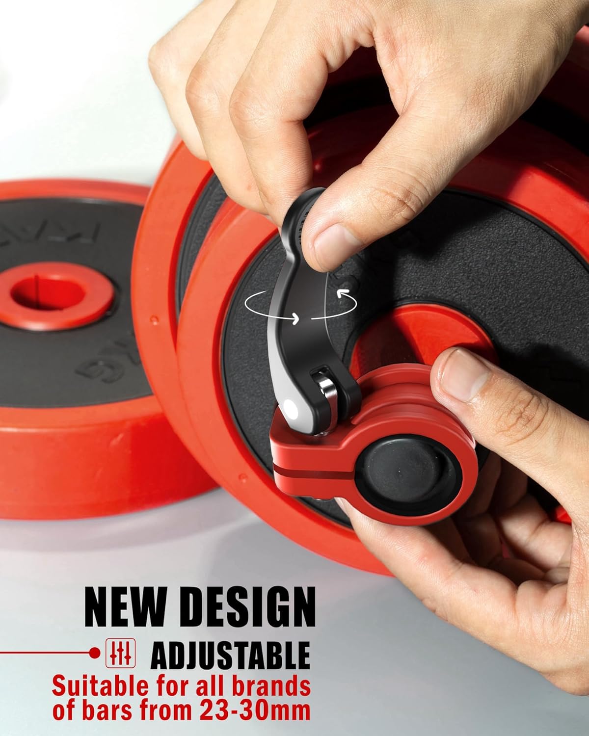 - Wide Size Adjustment Range:Adjustable barbell clamps fit 0.9-1.18inch bars with precise millimeter control. Self-tightening mechanism ensures secure grip that won't loosen over time during workouts.