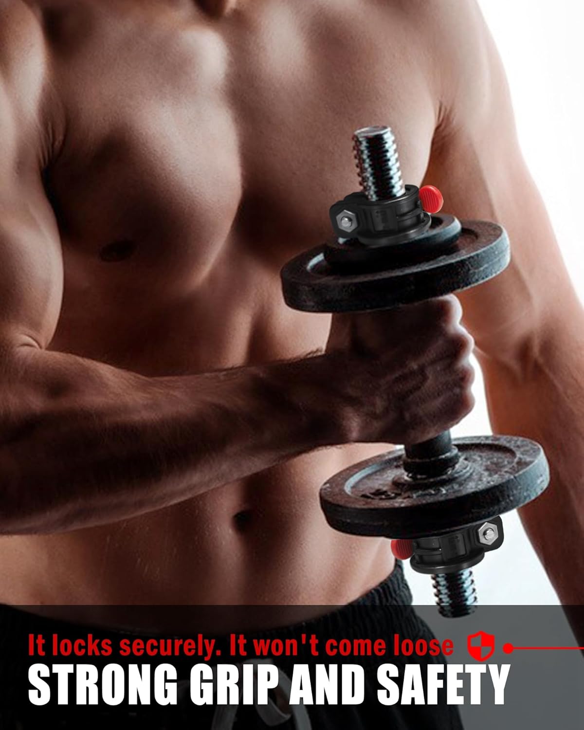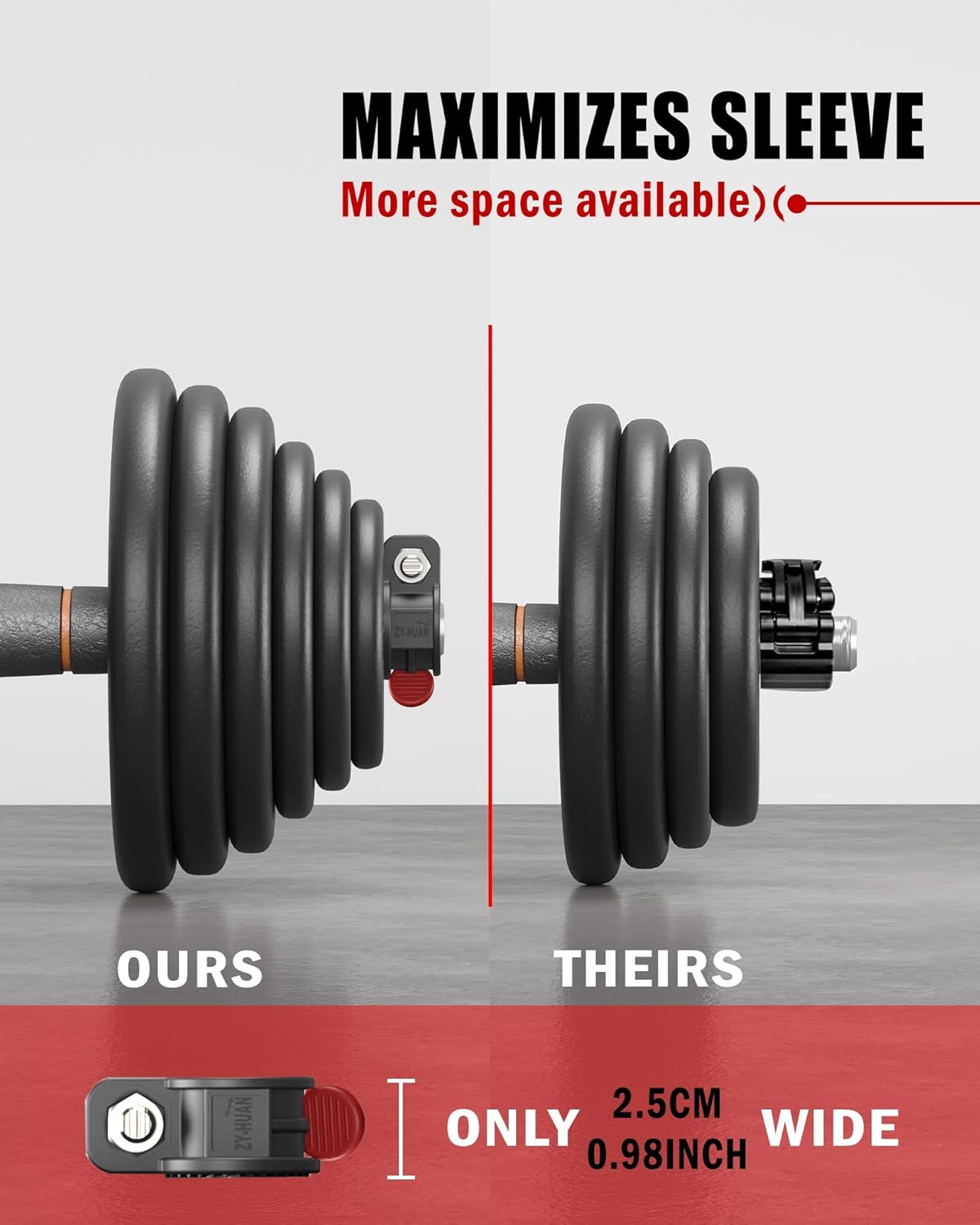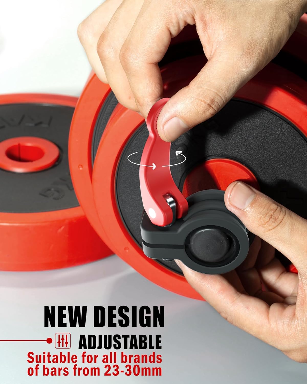 - Wide Size Adjustment Range:Adjustable barbell clamps fit 0.9-1.18inch bars with precise millimeter control. Self-tightening mechanism ensures secure grip that won't loosen over time during workouts.