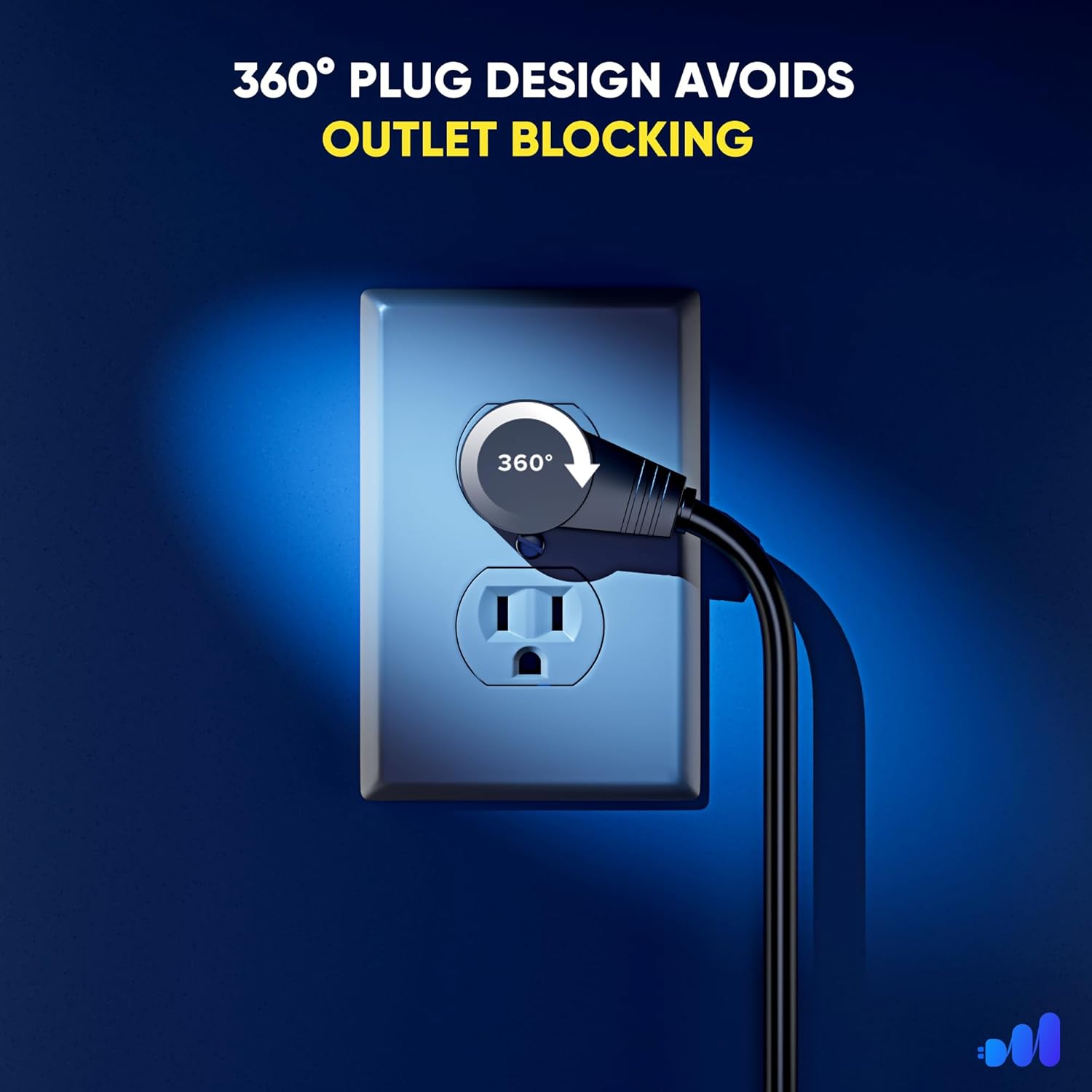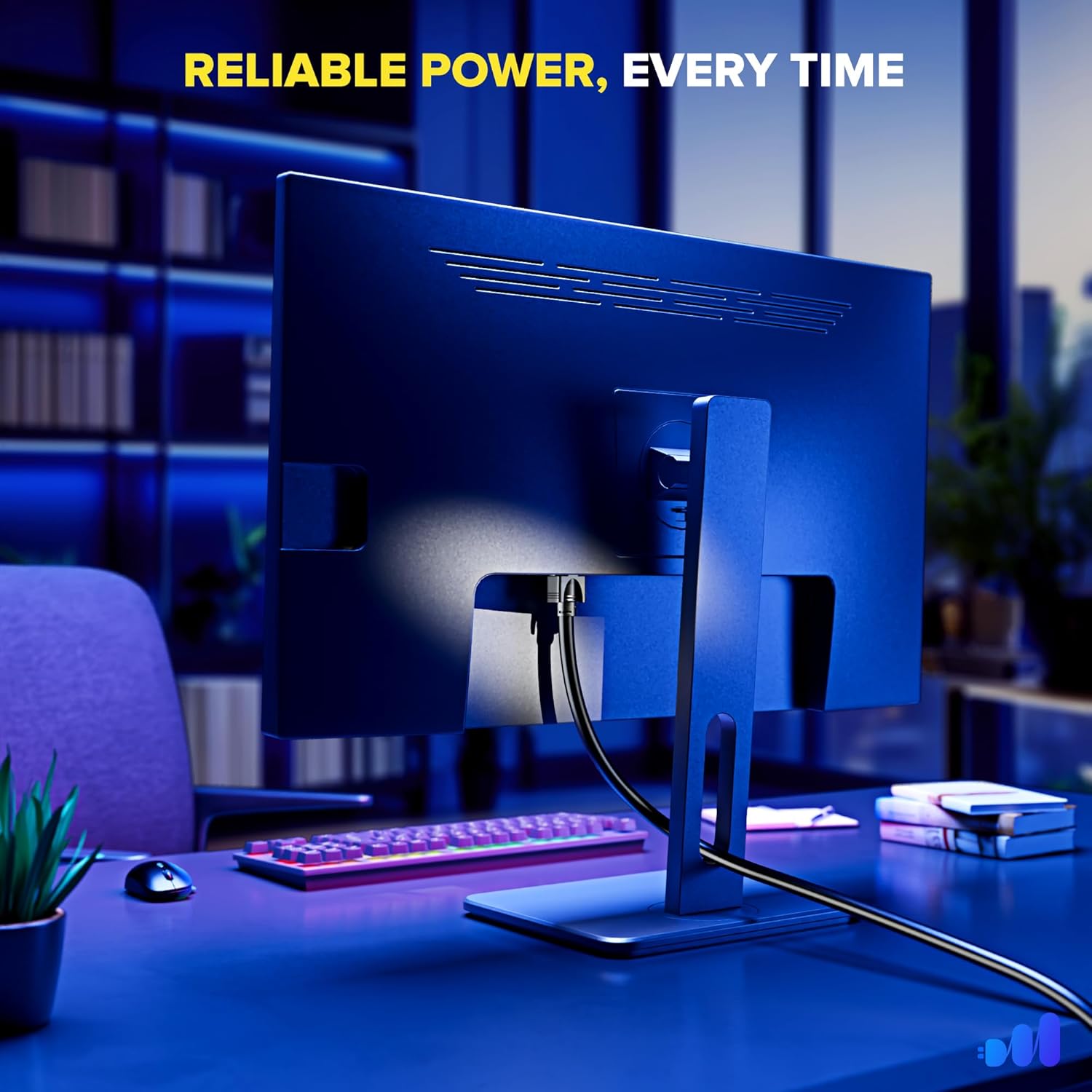 Maximm Monitor Computer Power Cord 1 Ft Flat Plug 360° Rotating PC Cable 3 Prong for, Desktop, Printer, Scanner, 16 AWG NEMA 5-15P to IEC13 - UL Certified