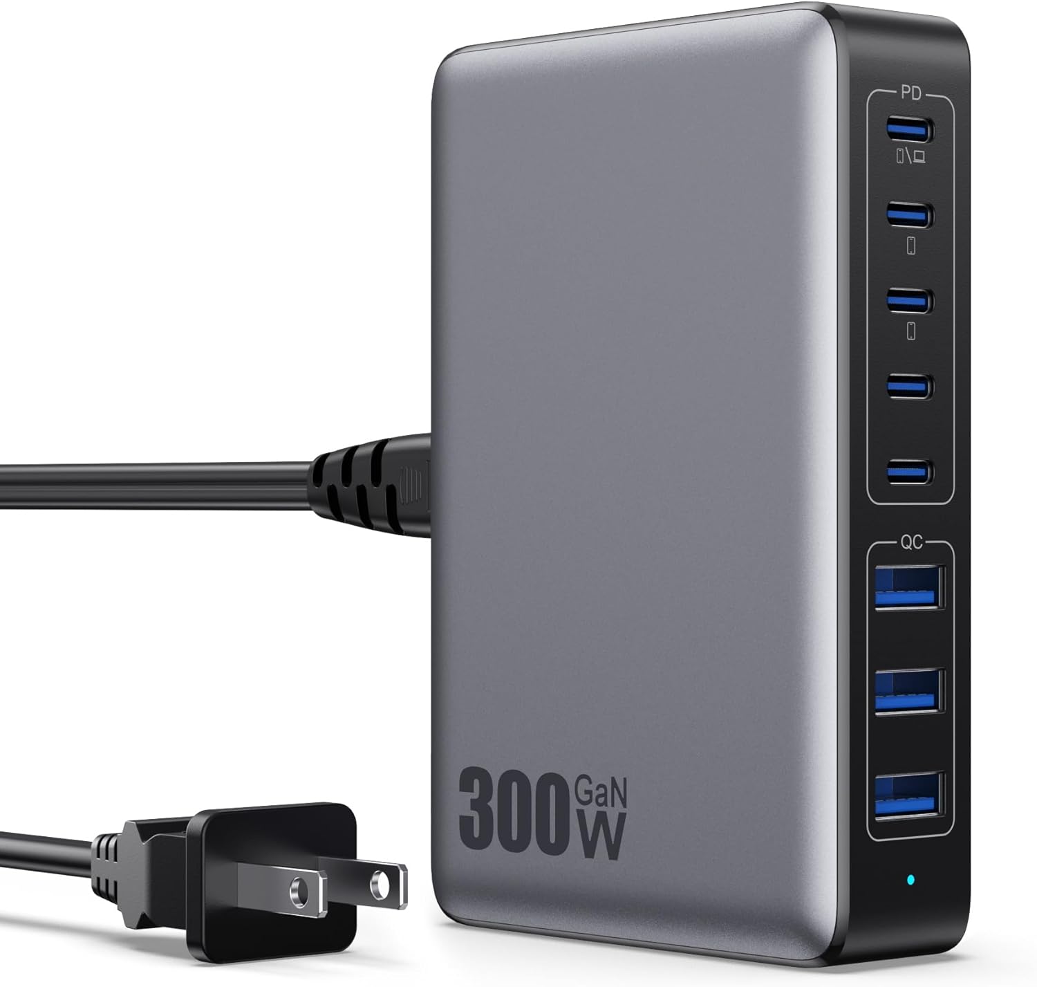 USB C Charger 300W USB C Charger Block 8-Ports GaN IV Fast Charging Station,PD 100W Laptop Hub Wall Charging Adapter Compatible with MacBook/Air,DELL,Steam Desk,iPhone 16/15/14,Samsung Galaxy S24 etc