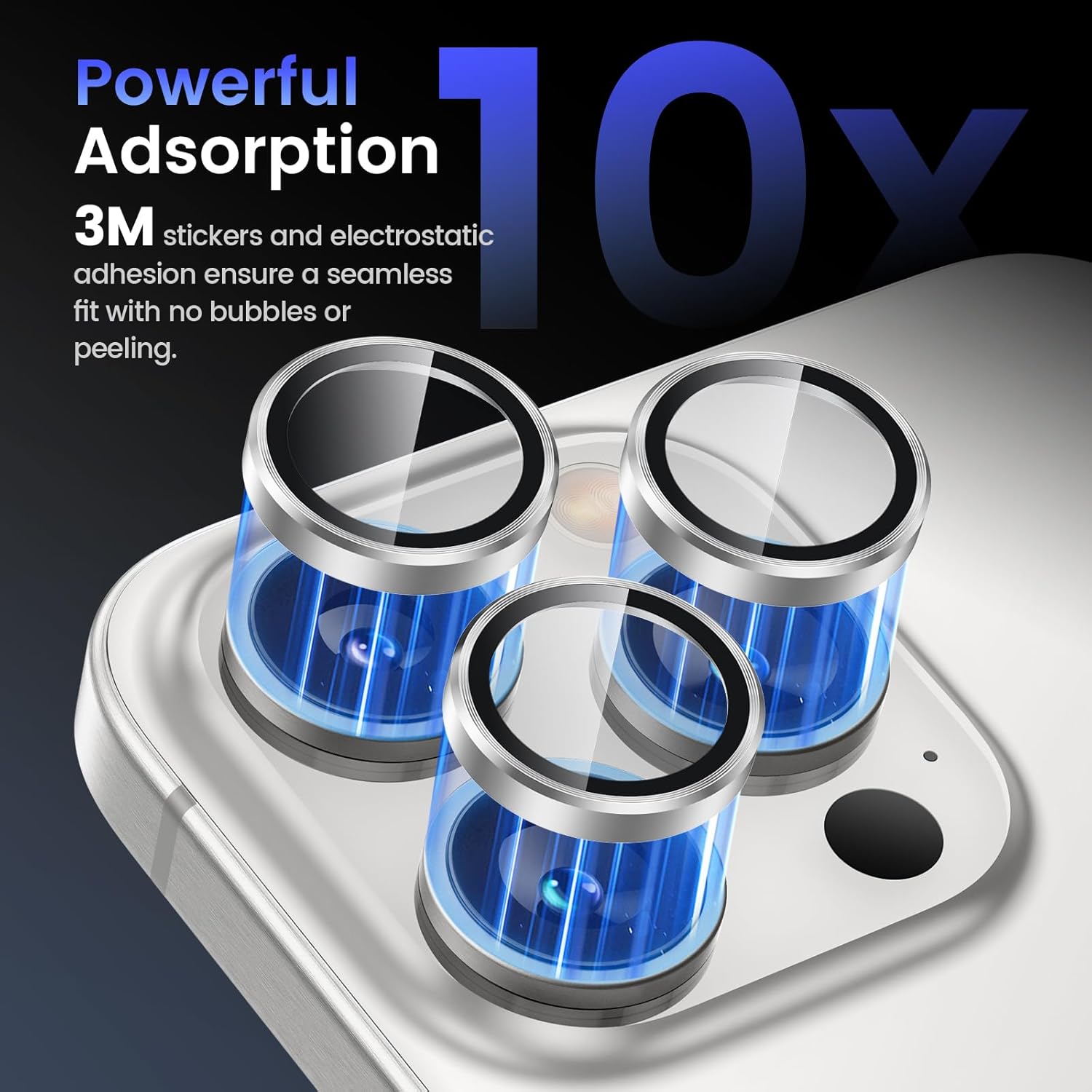• Compatibility- Tensea rear rhinestone camera screen protector made by aviation aluminum and 9H tempered glass is designed for iPhone 16 Pro Max 6.9" / iPhone 16 Pro 6.3" / iPhone 14 Pro 6.1" / iPhone 14 Pro Max 6.7" with three camera. (Note: Not for iPhone 16/iPhone 16 Plus/iPhone 14/iPhone 14 Plus with two Camera) No bubbles, Case friendly, leave no residue after removed