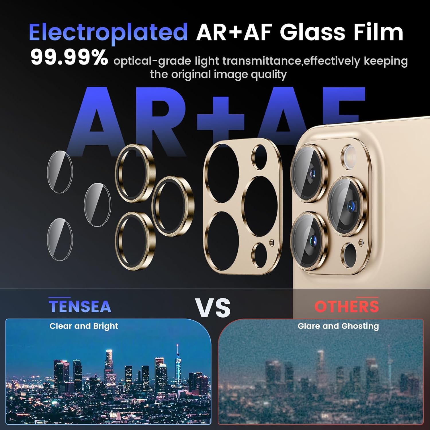 - COMPATIBILITY- Tensea rear camera protector made by 9H tempered glass and aluminum alloy is designed for iPhone 16 Pro 6.3inch / iPhone 16 Pro Max 6.9inch with THREE camera lens. The protector de camara full covers your phone lens. No bubbles, Case friendly, leave no residue after removed. NOTE: Not fit for iPhone 16/iPhone 16 Plus with two camera lens