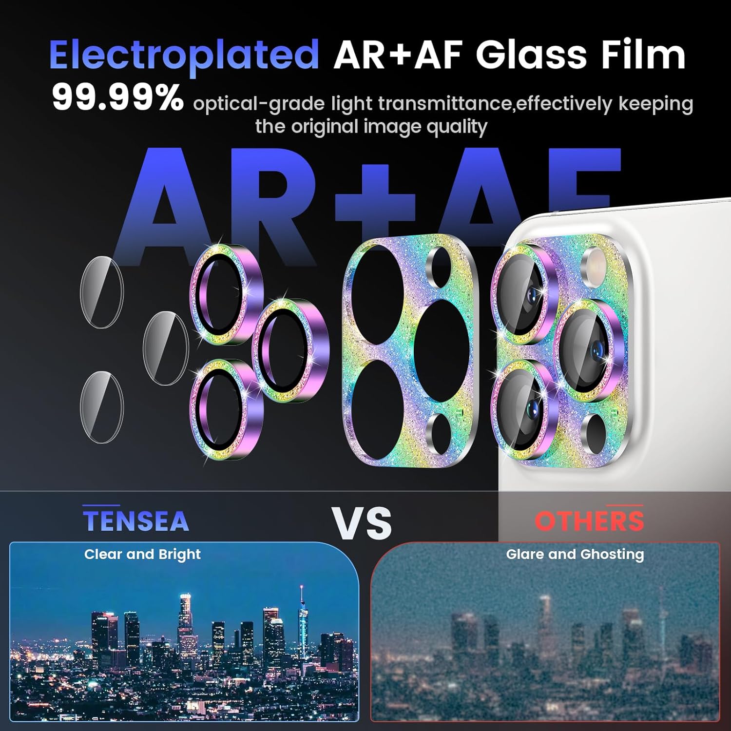 - COMPATIBILITY- Tensea rear camera protector made by 9H tempered glass and aluminum alloy is designed for iPhone 16 Pro 6.3inch / iPhone 16 Pro Max 6.9inch with THREE camera lens. The protector de camara full covers your phone lens. No bubbles, Case friendly, leave no residue after removed. NOTE: Not fit for iPhone 16/iPhone 16 Plus with two camera lens