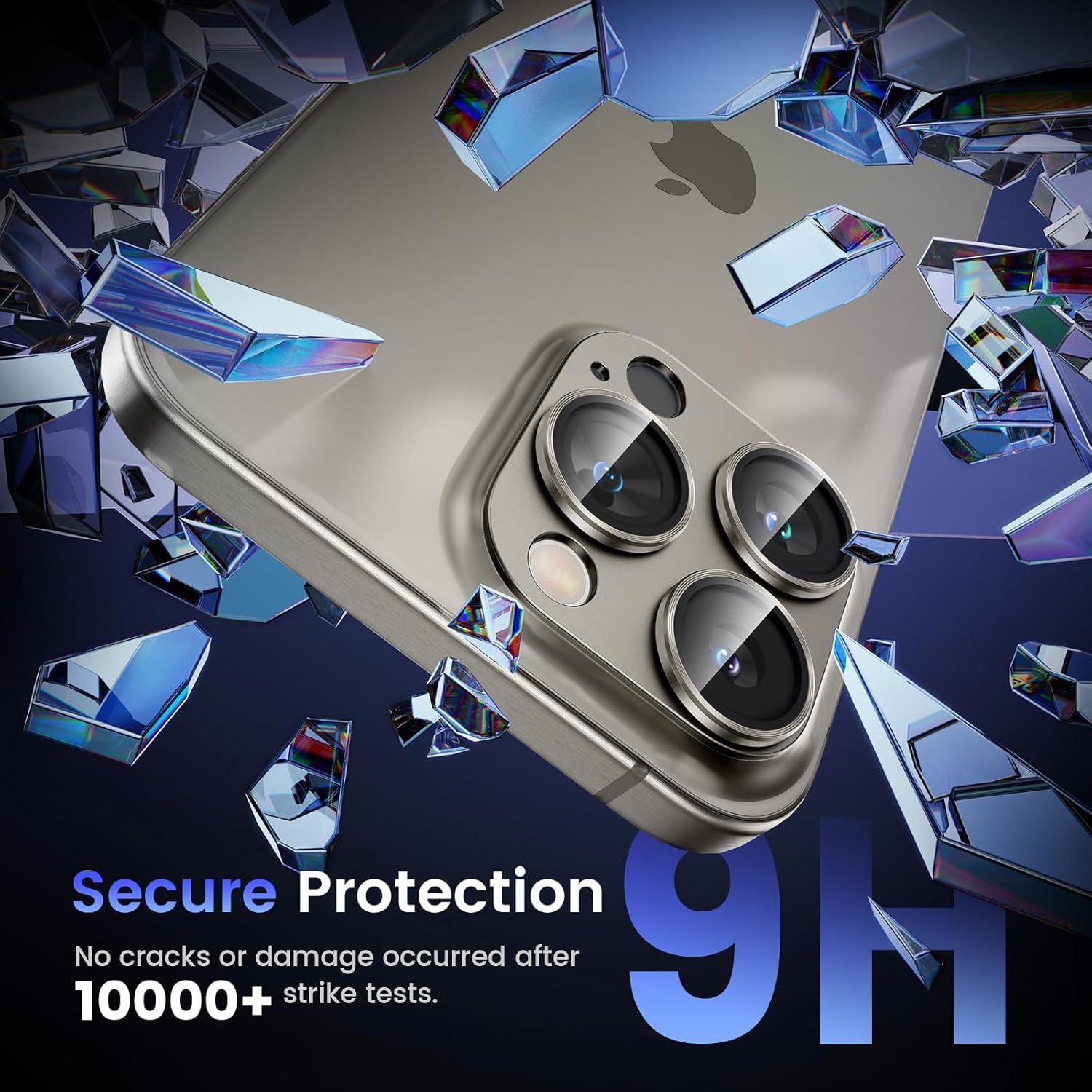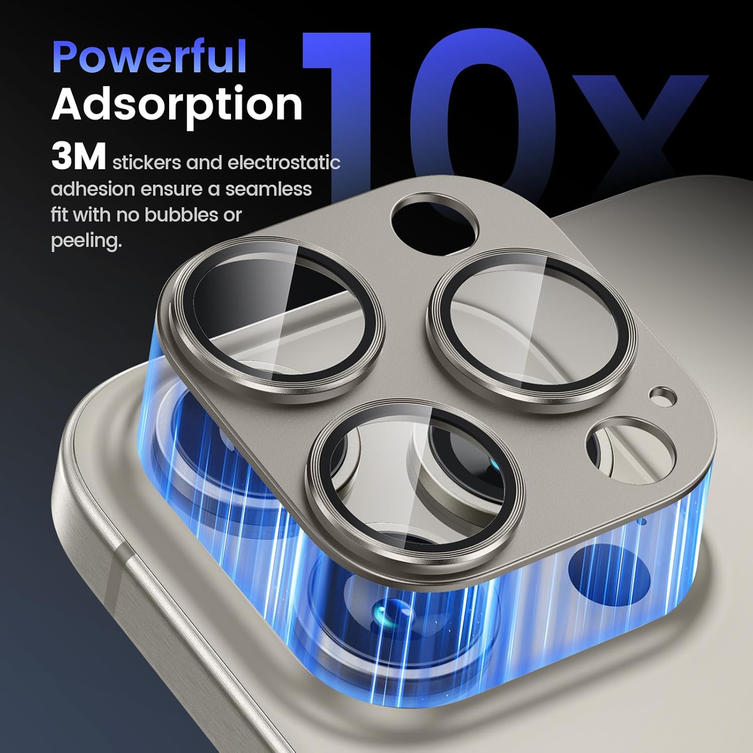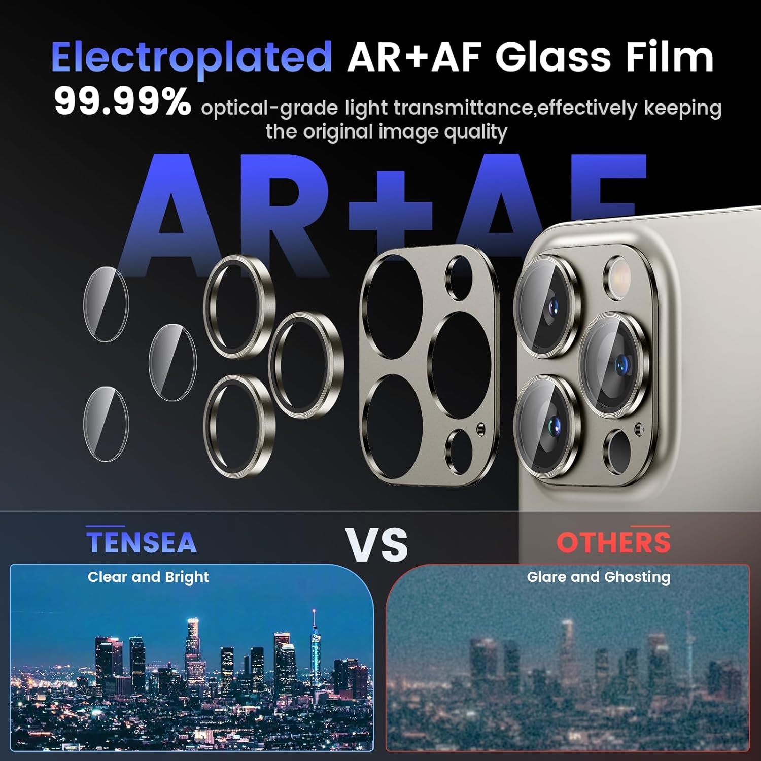 Tensea for iPhone 16 Pro/iPhone 16 Pro Max/iPhone 15 Pro/iPhone 15 Pro Max Camera Lens Protector, Metal Aluminum Alloy Tempered Glass Cover Camera Screen Protector Accessories, Case Friendly