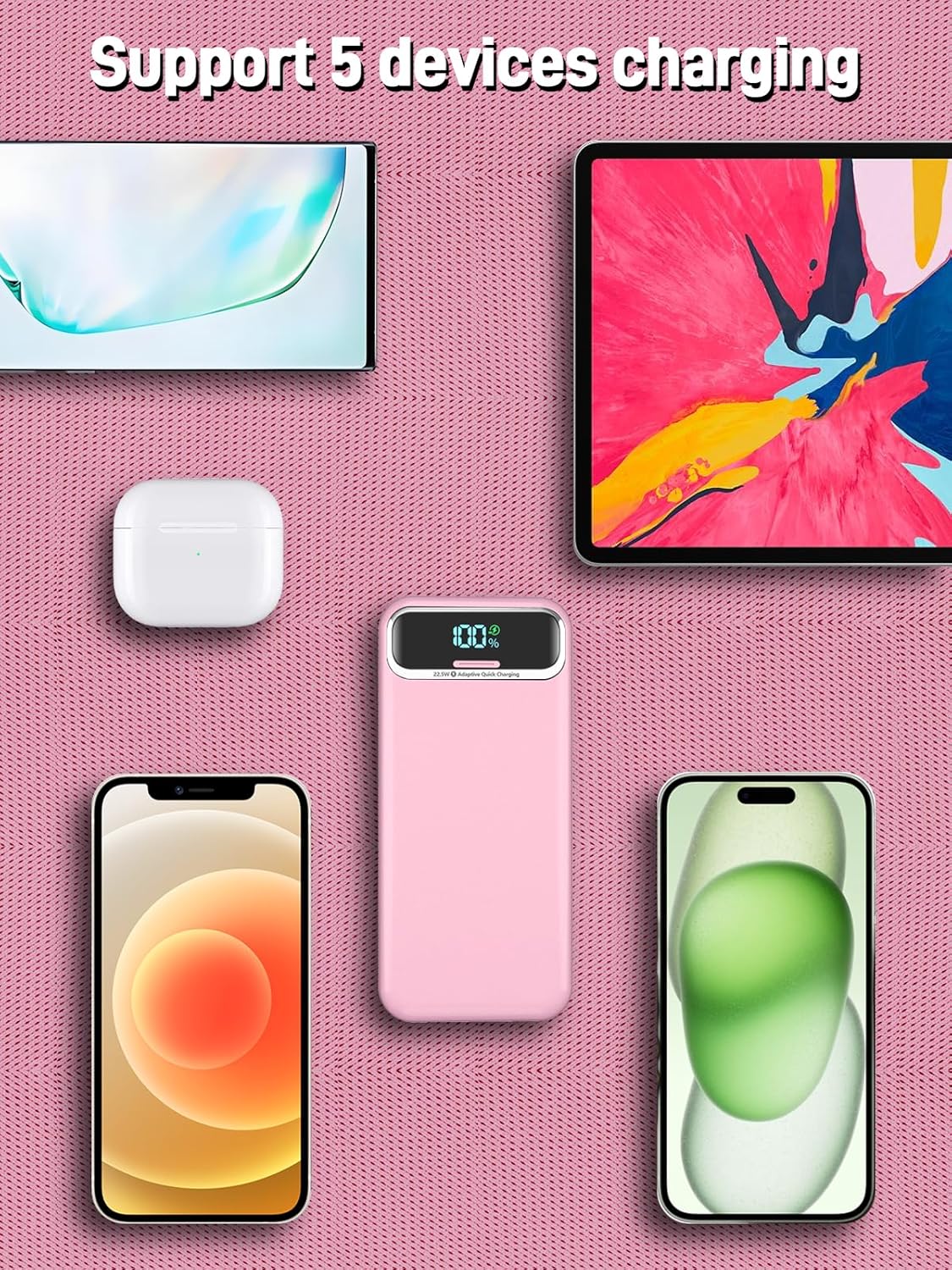 - Designed for multiple devices:This portable charger can simultaneously charge up to 5 devices, widely compatible with All iPhone, iPad, Samsung, tablets, just connected to your device,the LED digital display makes it easy to keep track of the remaining power, you can replenish the external battery when you need it.