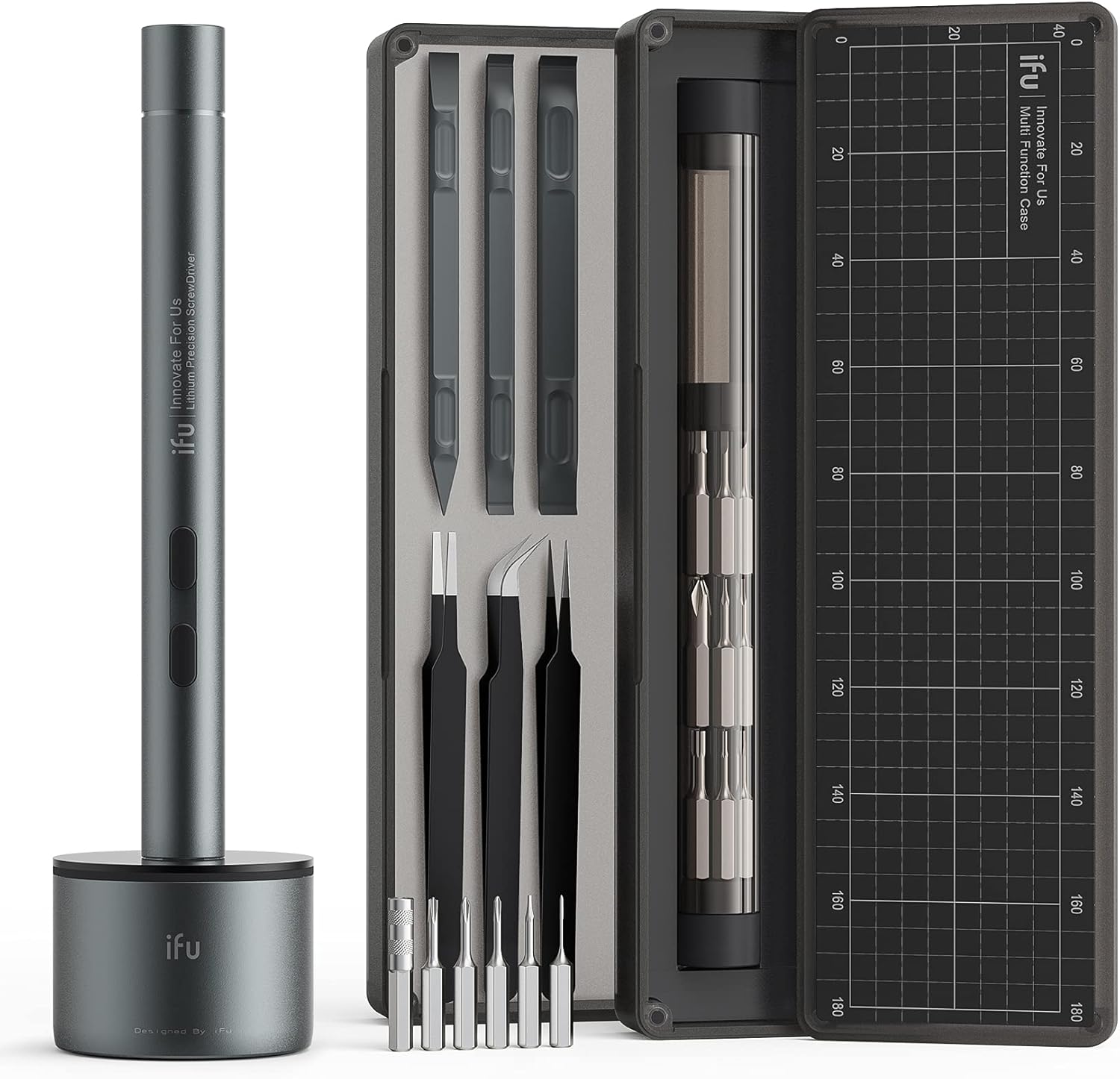 iFu Mini Electric Screwdriver, 42-in-1 Precision Screwdriver Set, Cordless, Magnetic Storage, 5/32''Hex, For Electronics Phone Camera Laptop Watch - Grey