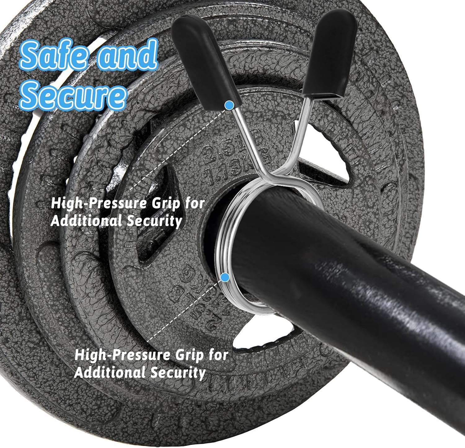 - 【Easy to Use】The fitness weight bar clamps adopt an ergonomic design, long press the button to expand the diameter until it reaches the correct position of the barbell, and then release the button to fix the barbell, without the risk of loosening or slipping.