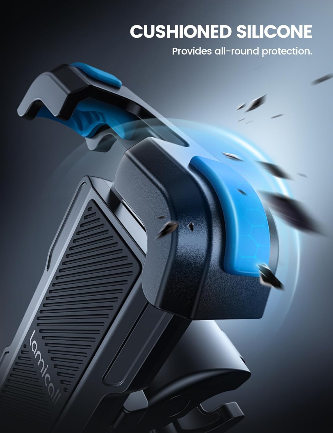 - 【 All-around Protection】 The four corners and back of the motorcycle phone holder are all equipped with non-slip silicone pads, keep your cell phone from scratching and slipping, ensure the safety even on rough roads. The max height/ width of the phone clamp is 6.61" (168mm)/ 3.11" (79mm), for Galaxy S25 ultra, S24 ultra series with a case, it may can't fit.