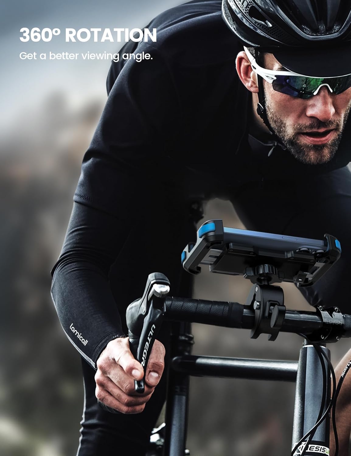 - 【 Upgraded Handlebar Clip】The handlebar clip adopts a new design, just press the button on the handlebar clip, you can quickly adjust the clip to fit the handlebar, no tools are needed. The secure grip makes sure your device is stable during the ride, wouldn’t slide even with severe bumps.