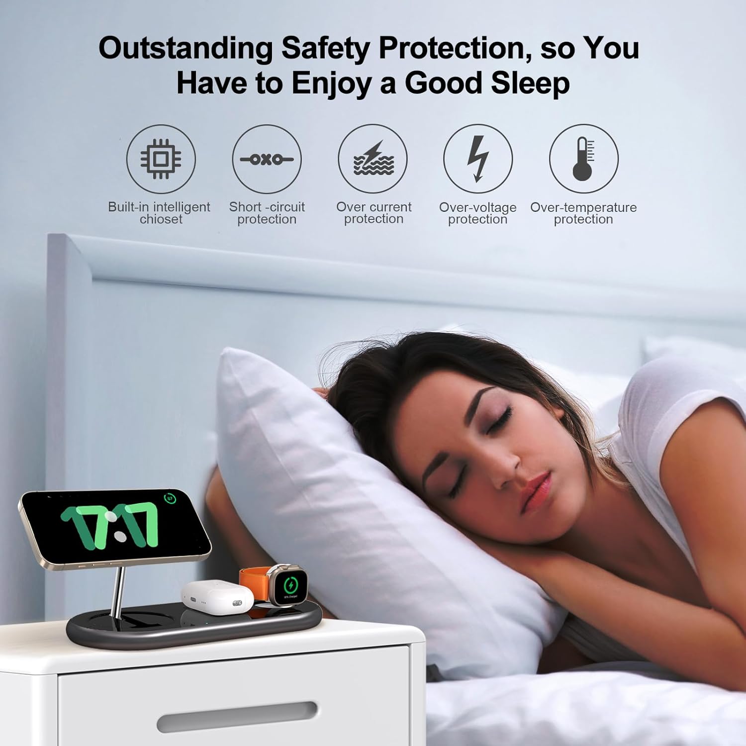 - WIRELESS CHARGING STATION FOR MULTIPLE DEVICES: Power your Apple ecosystem with the DooLV 3-in-1 Wireless Charger Stand. It's the perfect charging station for multiple Apple devices, charging iPhone16 15 14 13 12 Pro/Pro Max/Mini/Plus, Apple Watch Ultra/S10/S9/8/7/SE/6/5/4/3/2, Airpods 2/3/4/Pro /Pro2 simultaneously.