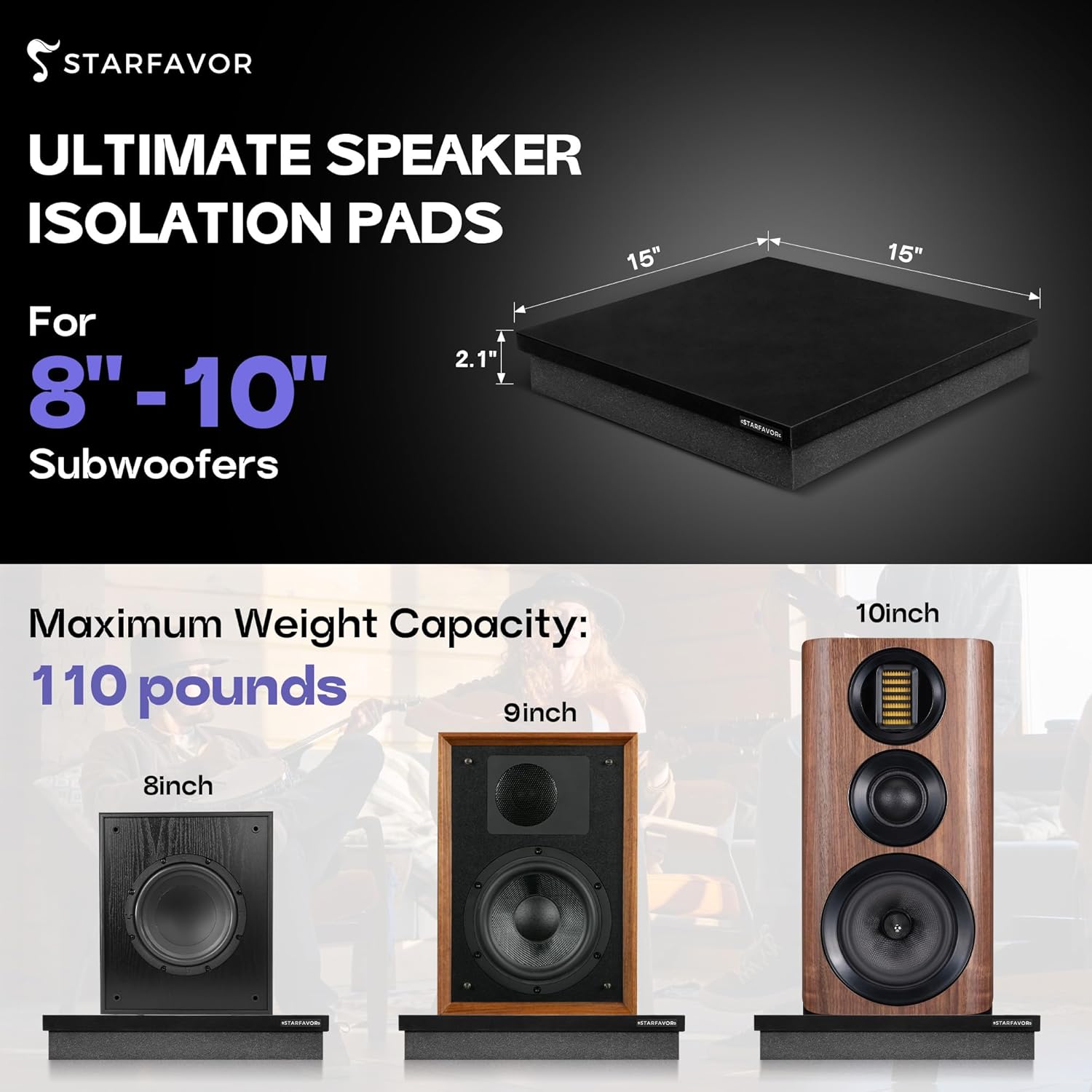 Starfavor Subwoofer Isolation Pad for 8-10 inches Subwoofers,15"*15"*2.1"Isolation Platform Acoustic Riser Pad,Audio Acoustic Noise Isolation Platform Pads for Studio Monitor,Subwoofer,Loud Speakers