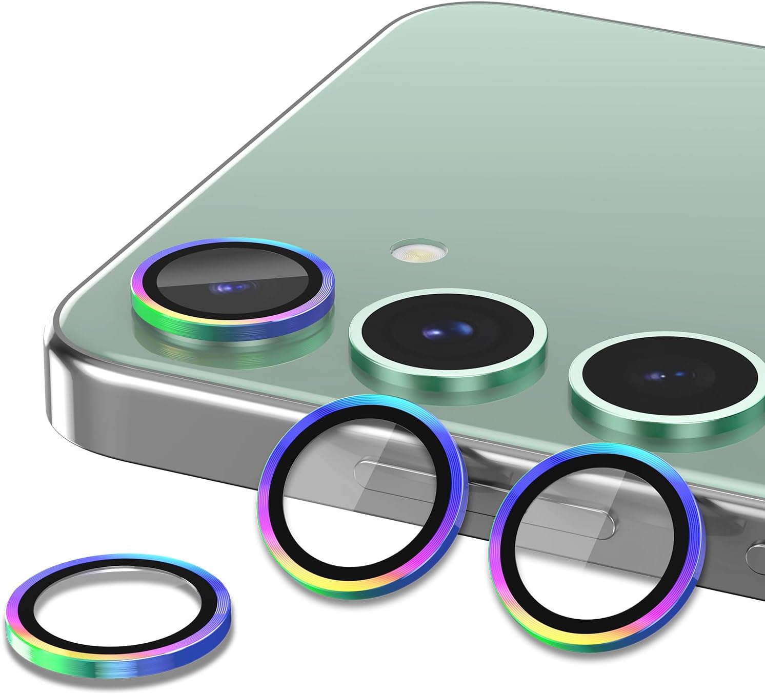 for Samsung Galaxy S24 FE Camera Lens Protector, Individual Metal Ring Tempered Glass Lens Cover, [Strong Adsorption] Scratch Resistant Ultra-Thin HD Clear Lens Cover, 1 Set-Colorful