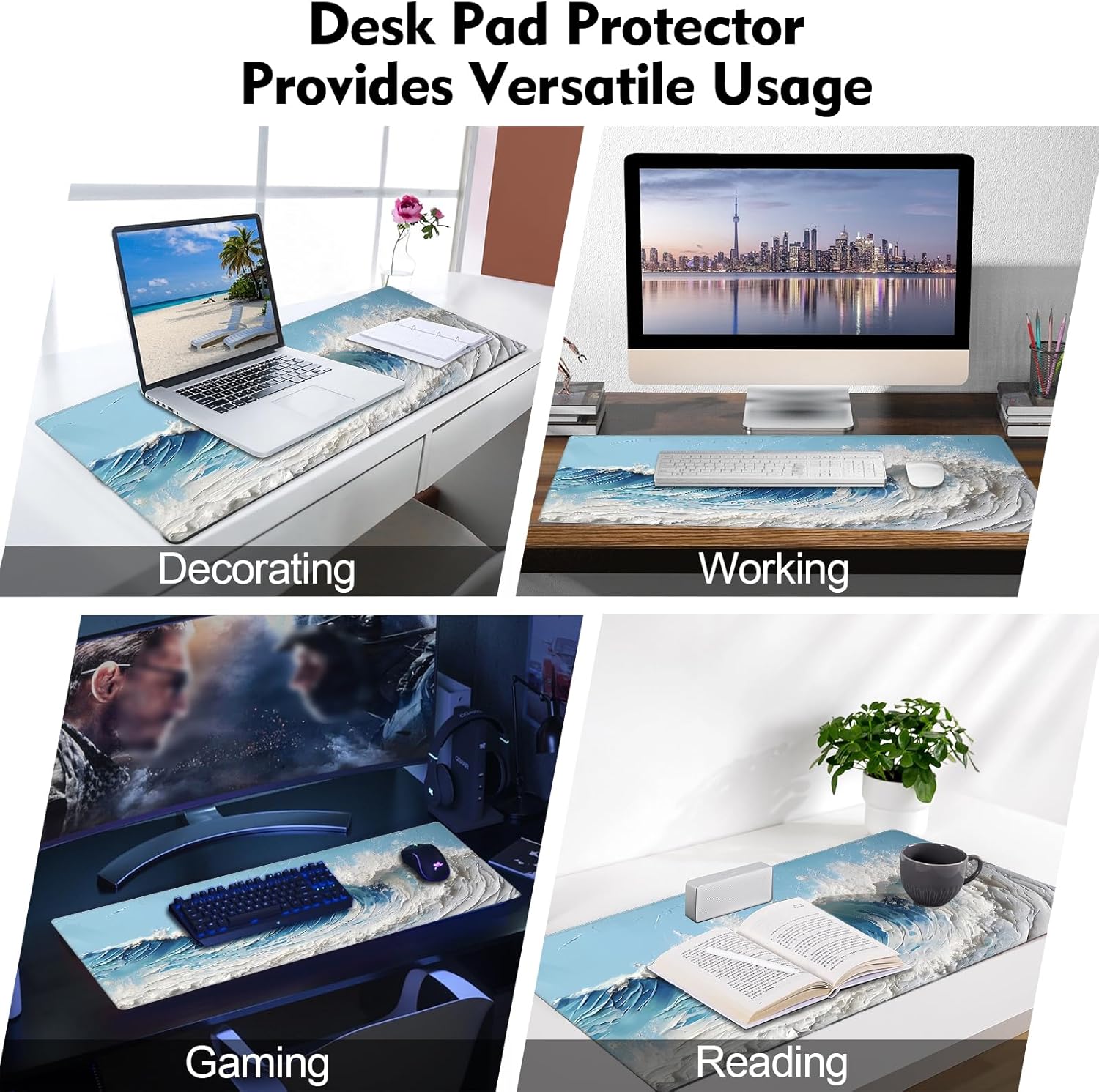 Galdas Gaming Mouse Pad XXL XL Large Long Extended Big Mousepad Non-Slip Rubber Keyboard Desk Pad with Stitched Edges for Laptop Home Office (31.5x11.8x0.08 Inch) … (Painting Waves)