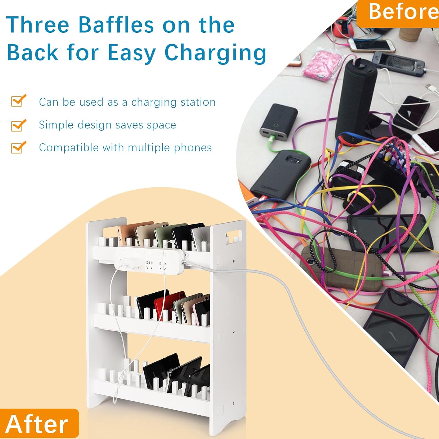 Cell Phone Holder Classroom Cell Phone Storage 3-Tier Multiple Cell Phone Stand Rack with 1-36 Number Stickers PVC Board Mobile Phone Holder Desktop Organizer for Classroom Office