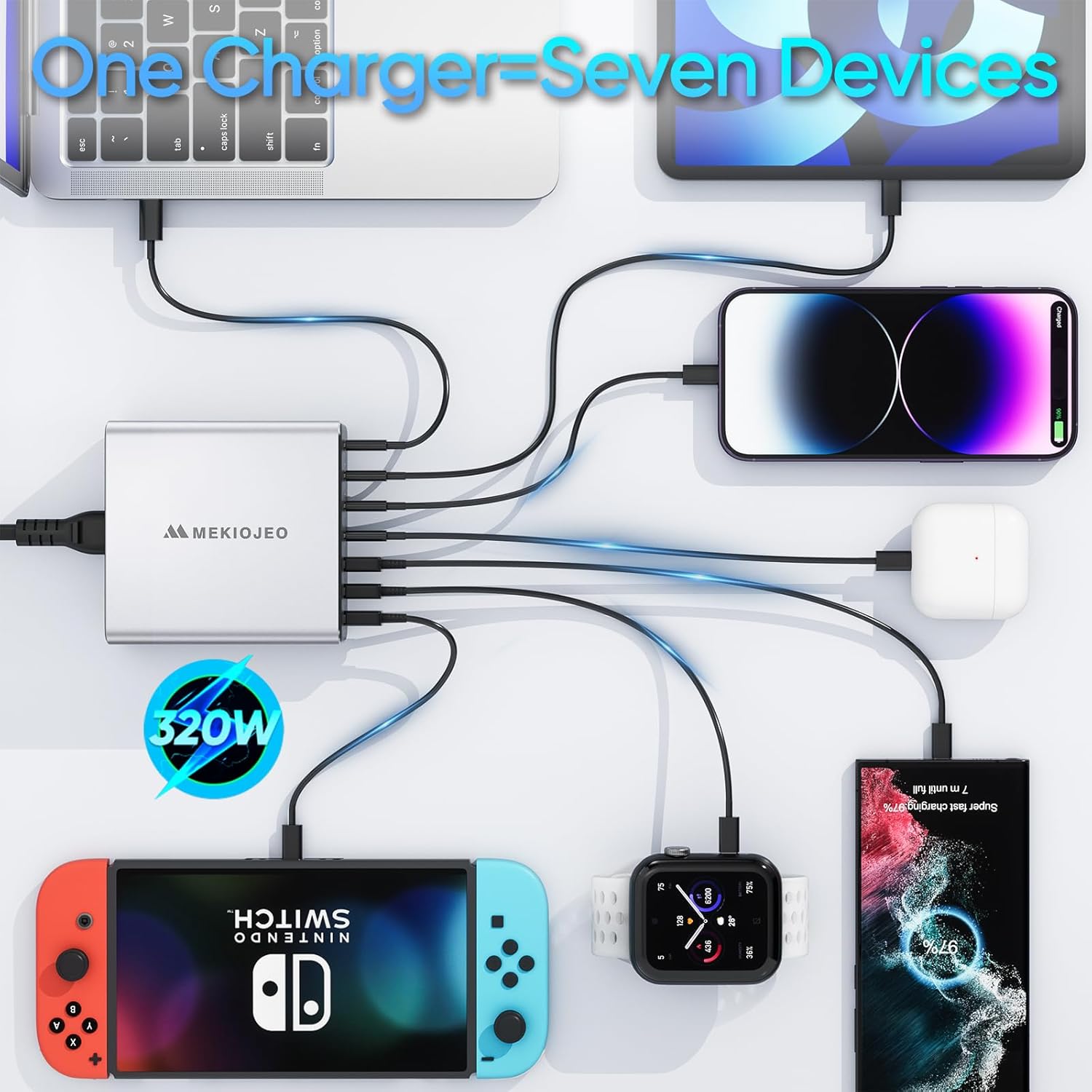 - 7 MultiProtect Safety Systems: Our 320w usb c charger block is equipped with enhanced surge protector: Temperature Protection, Over-Current, Over-voltage, Overcharge, Overload, Overheat and Short circuit. The certification authority of our usb-c charger is in line with safety tests, ensuring 100% for you and your device's protection.