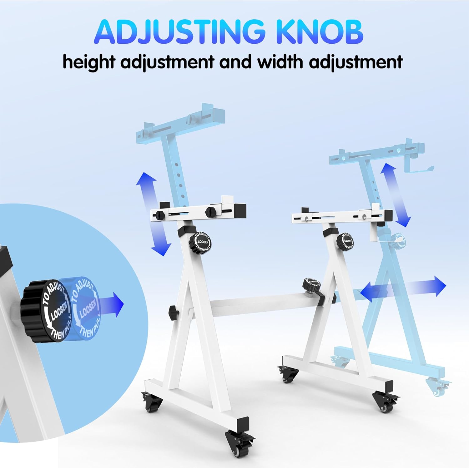 - Lockable universal wheels that allow you to move the stand anywhere easily.