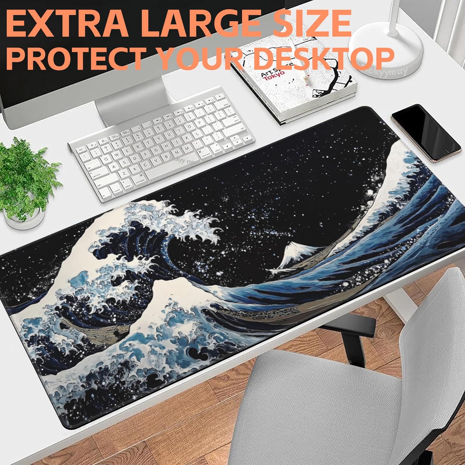 Mouse Pad Large Wave in The Night Sky Non-Slip Game Desk Mat with Stitched Edge Laptop Keyboard Desk Pad for Work Home Gaming (35.4 x 15.7 Inches)