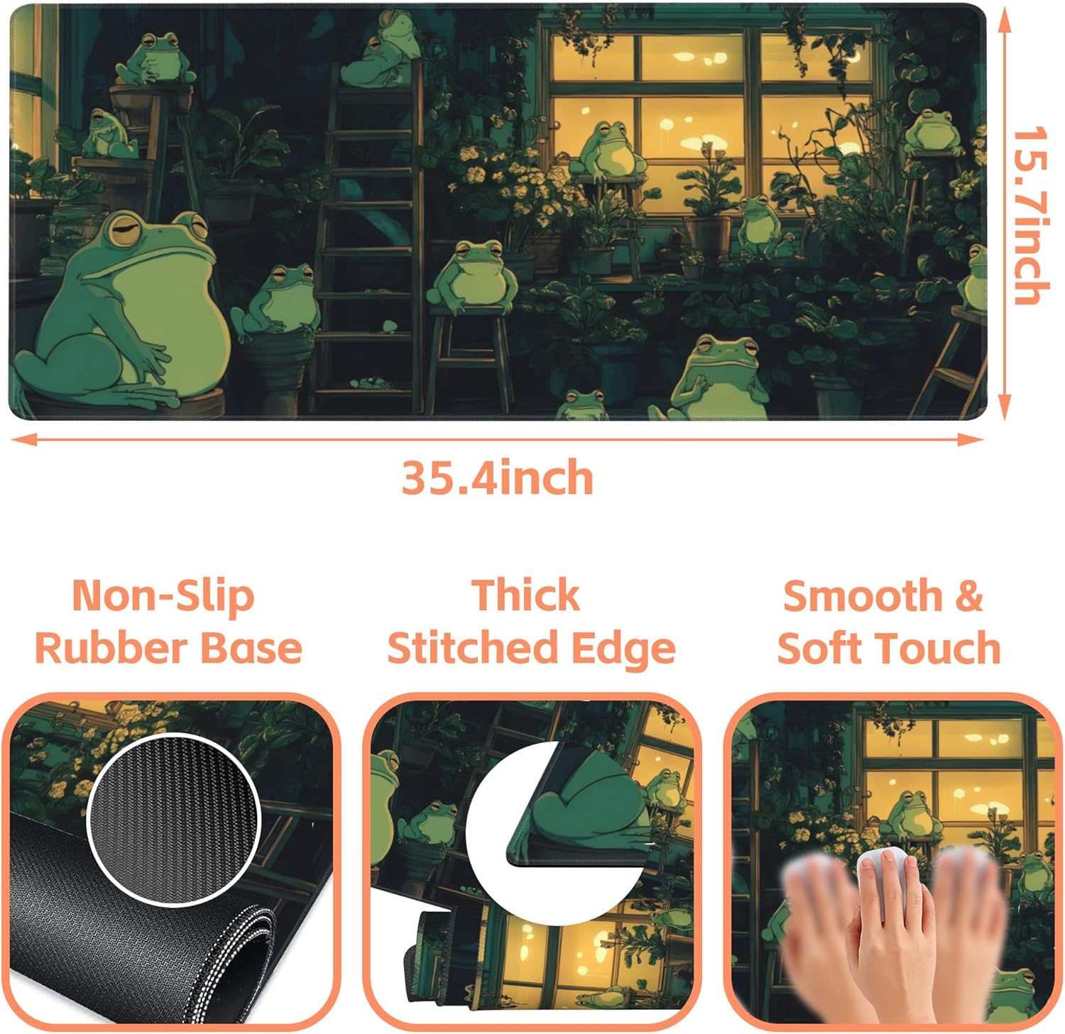 Mouse Pad Large Cute Frogs Non-Slip Game Desk Mat with Stitched Edge Laptop Keyboard Desk Pad for Work Home Gaming (35.4 x 15.7 Inches)