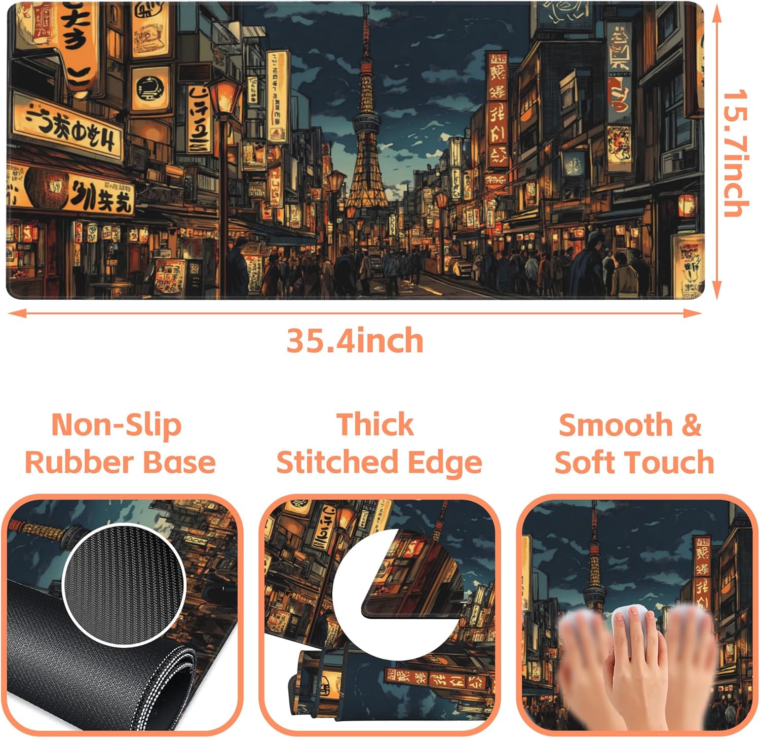 Mouse Pad Large Bustling Street Non-Slip Game Desk Mat with Stitched Edge Laptop Keyboard Desk Pad for Work Home Gaming (35.4 x 15.7 Inches)