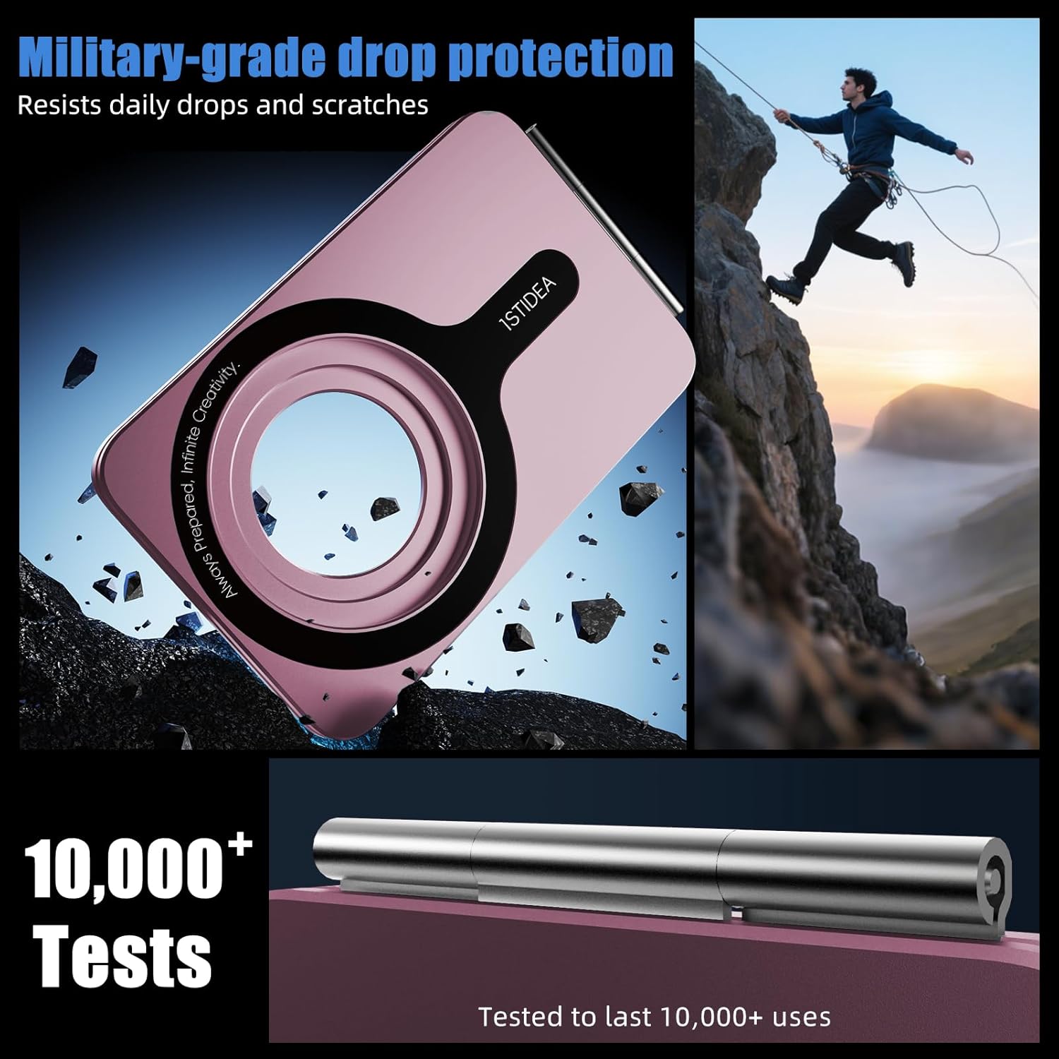 Magnetic Tripod for iPhone, Aluminium Phone Tripod Stand Compatible with Magsafe iPhone 16/15/14/13/12 Series, Foldable Strong Magnetic Phone Stand & Portable Phone Holder, Pink