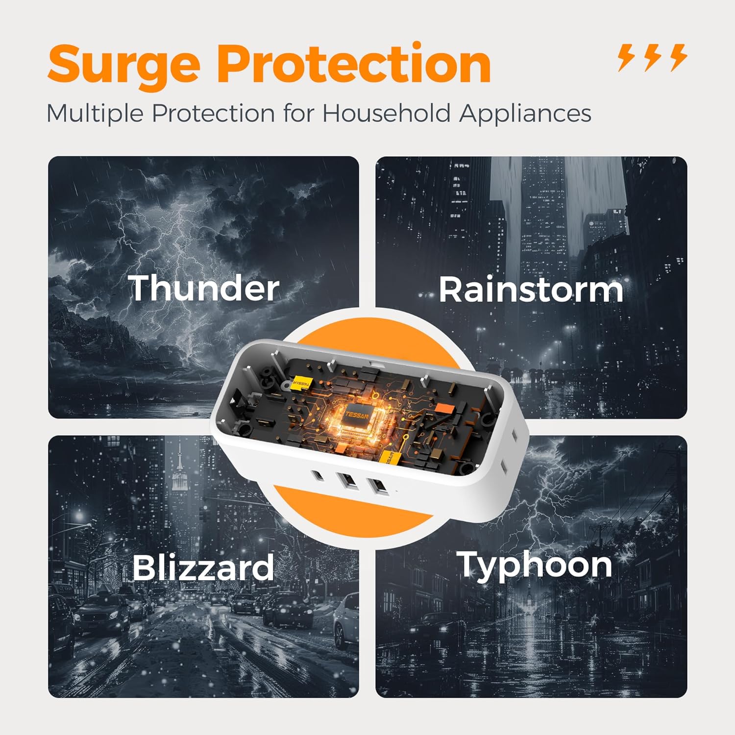 - Surge Protector Outlet: The wall outlet with USB ports protects your devices, such as computers and other electrical appliances, from power surges and spikes; Wall plug extender provides a secure and dependable charging environment