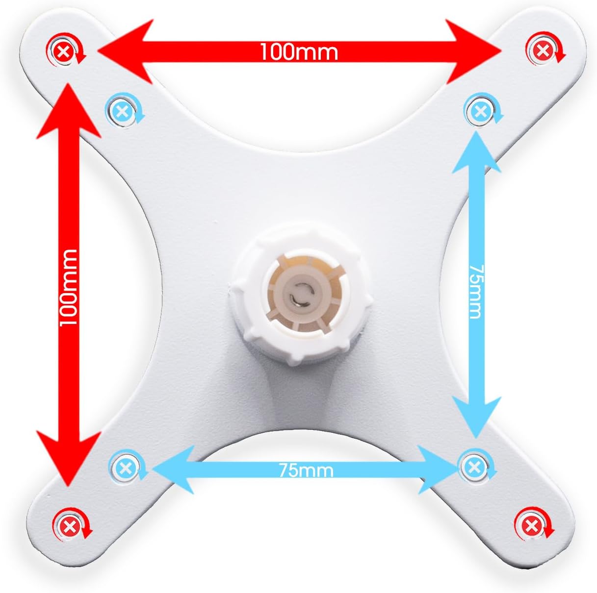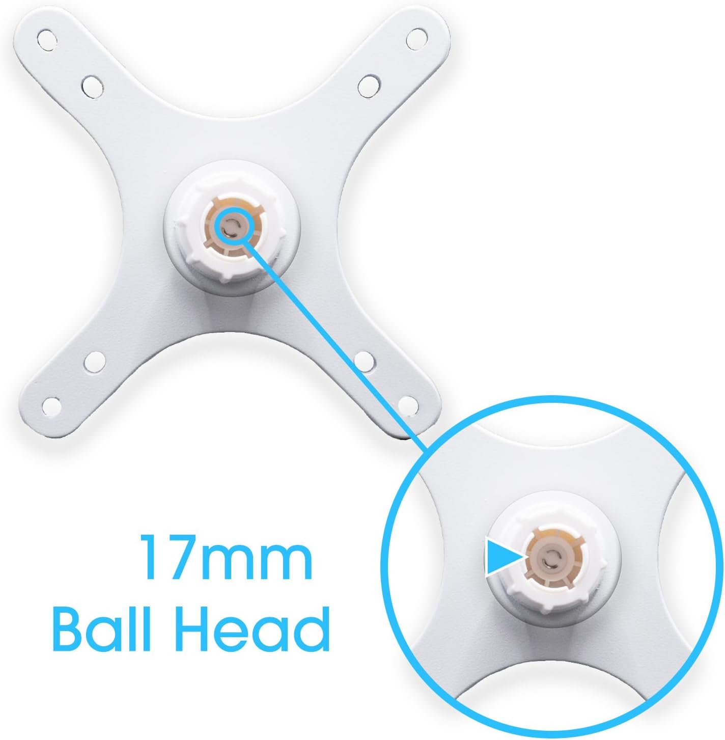 Kado Portable Monitor Stand Bracket Plate Adapter White, Wall Mount Arm Mount 17mm Ball Head to 100x100mm 75x75mm M4 Screw Set, Tripod Camera Stand for Desktop Monitor Portrait/Landscape Mode