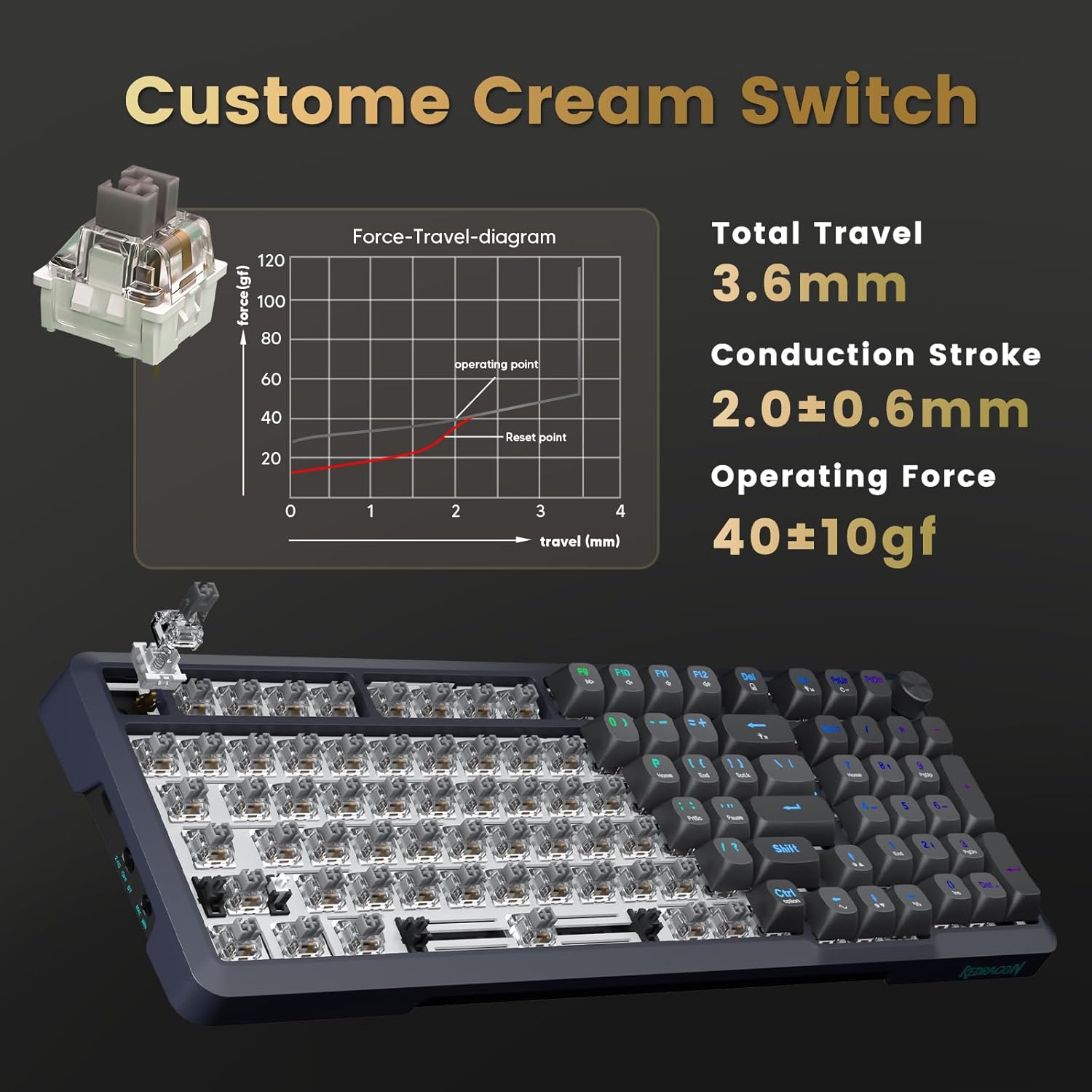 - ăHot Swappable & Pre-lubed Cream Switchesă: Hot swappable mechanical keyboard comes with pre-lubed cream switch. These linear switches have a unique look, creamy sound and excellent smooth keystroke feel. Creamy and thocky sounding gives you unlimited fun while typing. High quality PCB board compatible with 3pin/5pin switches. You can have a high degree of customization