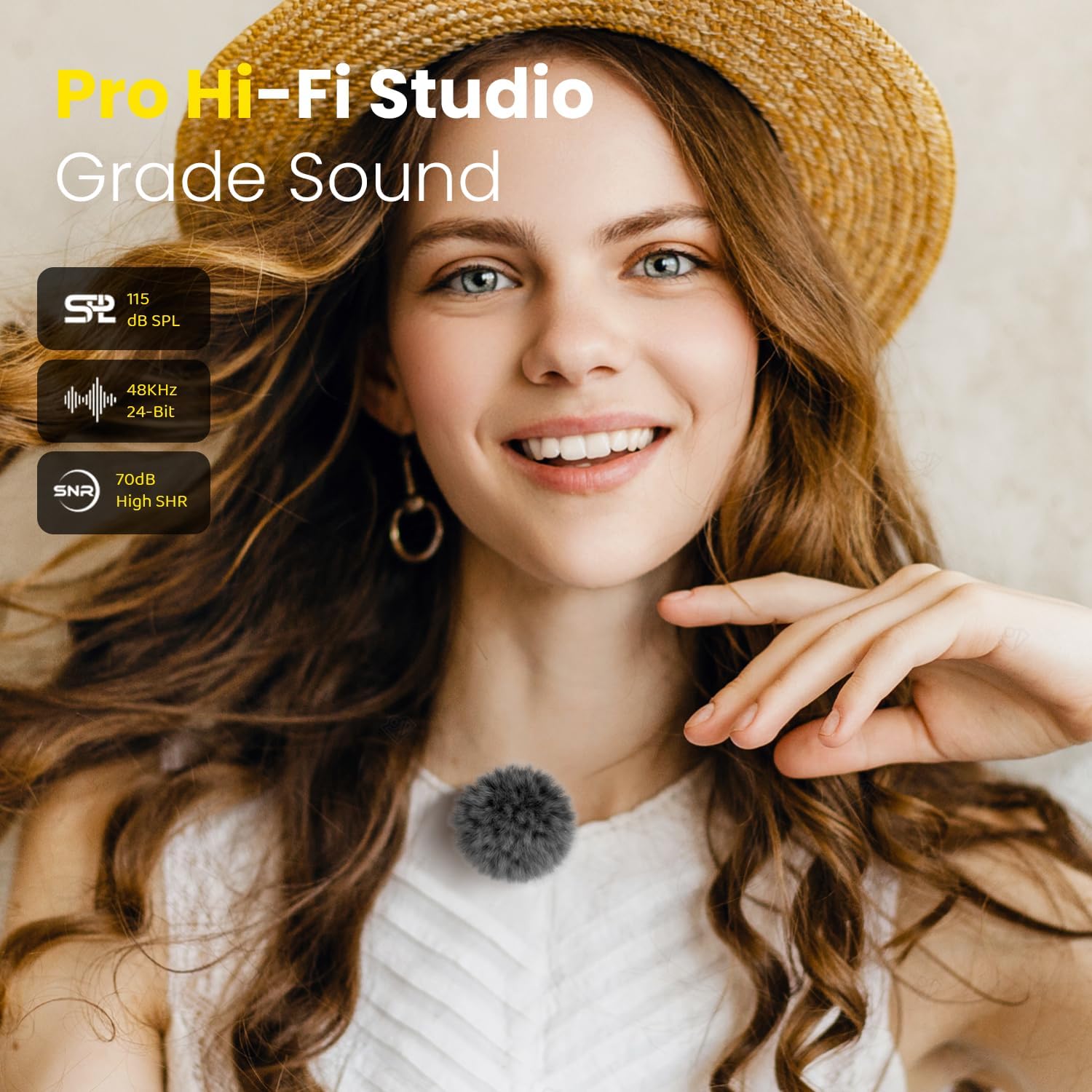 - 【36h Continuous Creation & FCC Certification】This mic for iPhone Android offers up to 6h/Pcs, and the case provides two additional charges. Each charge takes less than 1.5h, and an LED display monitors battery status to prevent unexpected shutdowns. The 2.4GHz digital transmission ensures reliable wireless audio. Already certified by FCC, reliability of magnetic mic is our root.