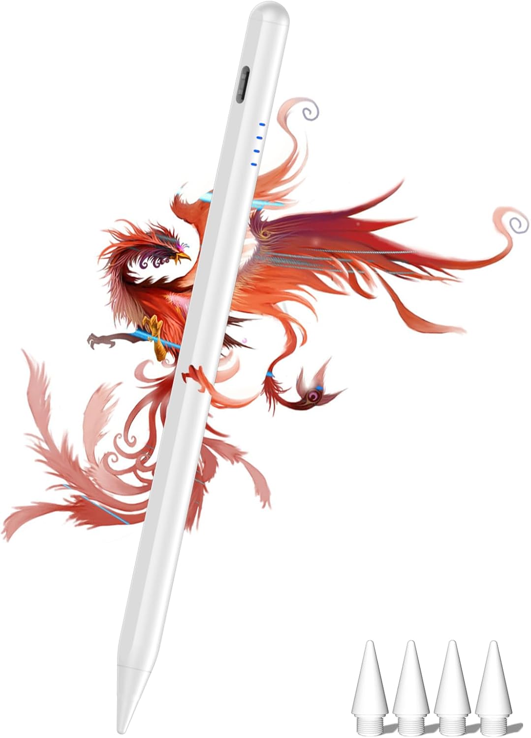 - ăBattery Indicator / Type-C Chargingă This iPad pen uses the popular Type-C charging port for charging, and can be used for 8 hours after 20 minutes of charging. When charging, four lights on the side of the stylus will light up gradually, each light represents 25% of the power, so you can observe the charging status and power usage in real time, and keep track of the remaining power at all times to ensure that you don't drop the ball during critical work time. The iPad stylus has a sleep function. When you forget to turn it off, keep it still for 5 minutes and the stylus will automatically turn off, effectively saving battery life