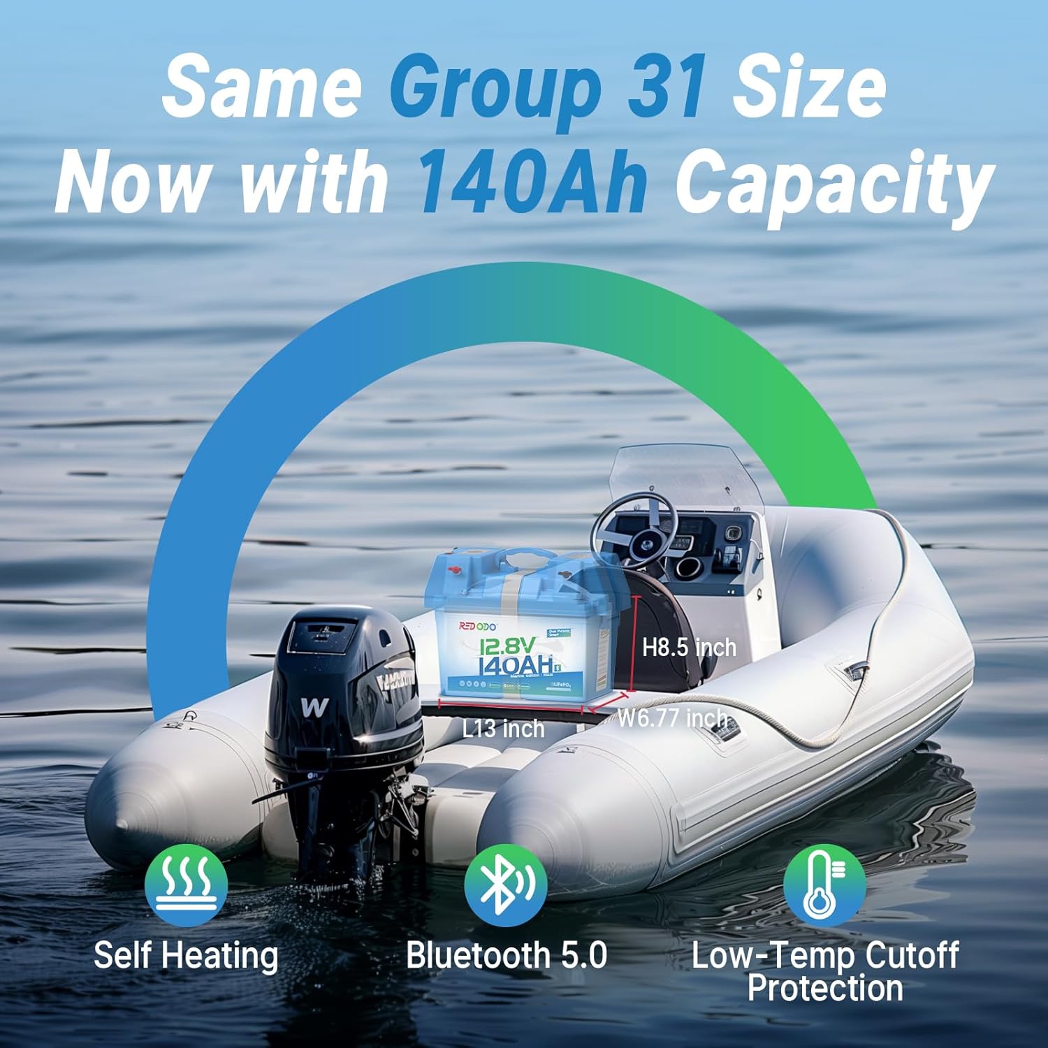 - 【Marine Starting Battery Plus Deep Cycle Performance】Redodo 12 volt 140Ah dual purpose marine battery offers 1000 CCA (Cold Cranking Amps) and 1200 MCA (Marine Cranking Amps), born for cranking up fuel powered marine outboard motor.