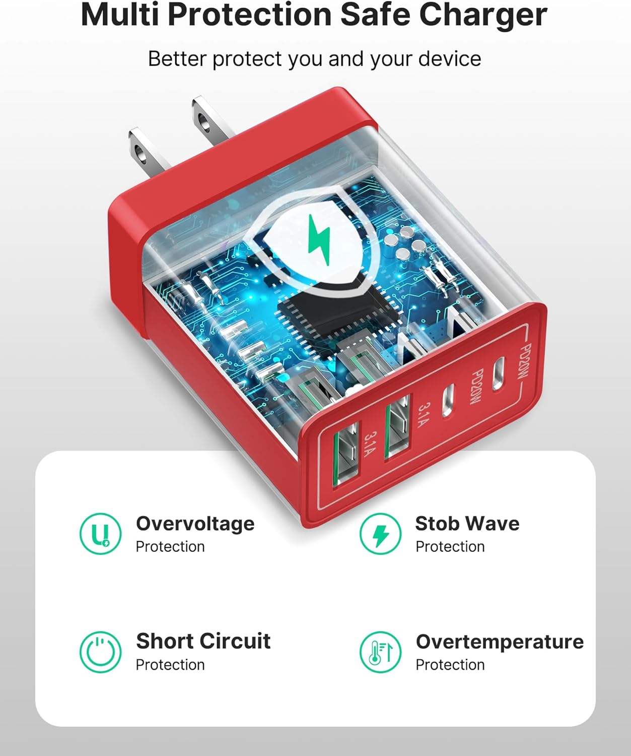 - Perfect Compatible USB Charger - Due to the special 4-port,the fast charger block is compatible with almost all electronic devices,charging adapter for iPhone 16/16 Pro/16 Pro Max/16 Plus/15/15 Pro/15 Pro Max/14/14 Pro/14 Pro Max/13/13 Mini/13 Pro Max/12/12 Pro Max/12 Pro Max/12 Mini/SE 2020/11/11 Pro/11 Pro Max/XR/XS/X/8/7,iPad Air/Pro/Mini,Samsung Galaxy S22/S21/S20/S10/S9/S8,Note 9/Note 8/a51/A50/A12/A21s/A20e,Tablets,LG,Google Pixel, Xiaomi, Switch, ps5 and other digital devices
