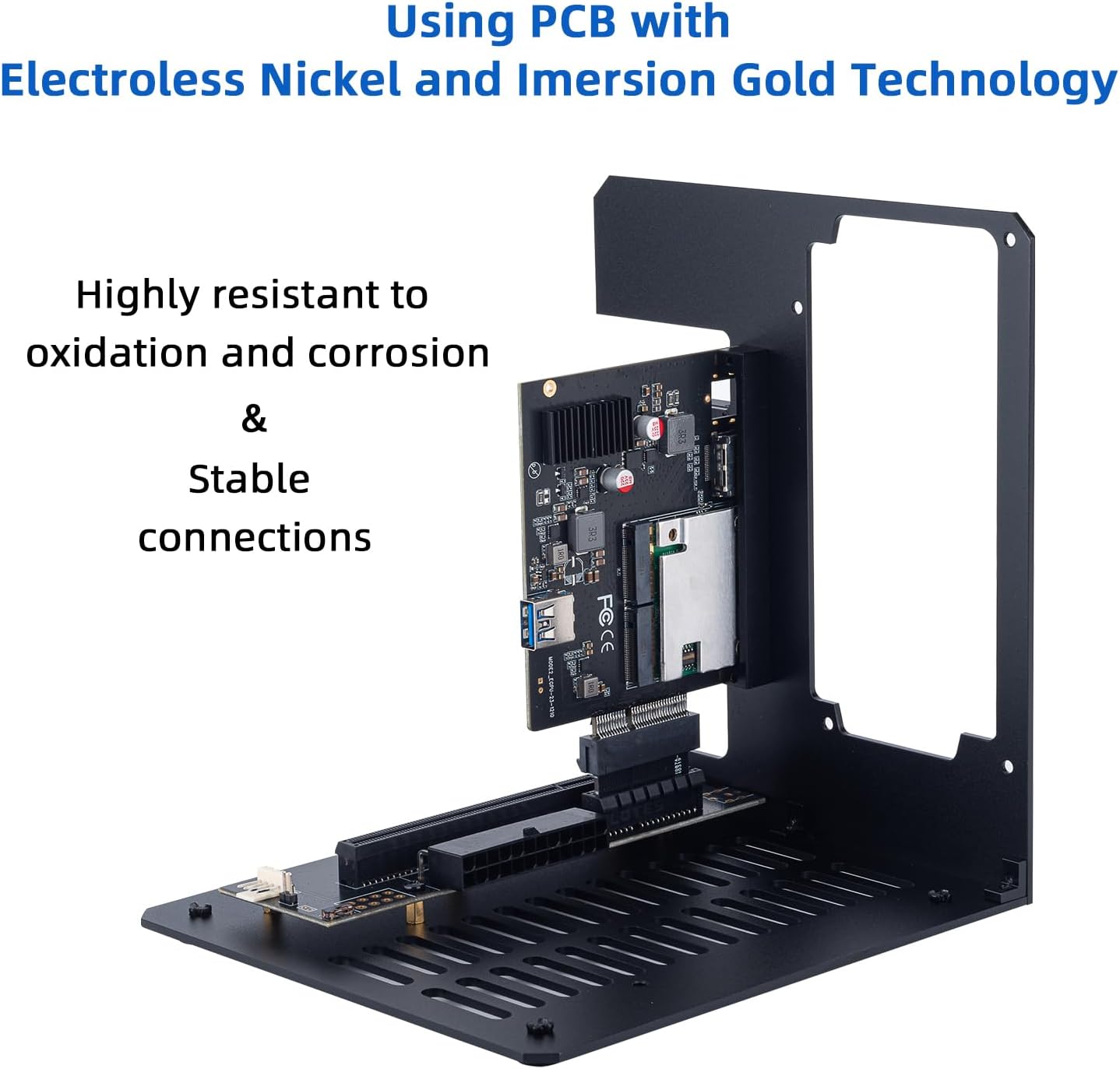 - Design: Aluminum alloy material, with an anodized surface treatment that is rust-resistant, fade-proof, lightweight, and durable. Open design allows for unlimited graphics card length.