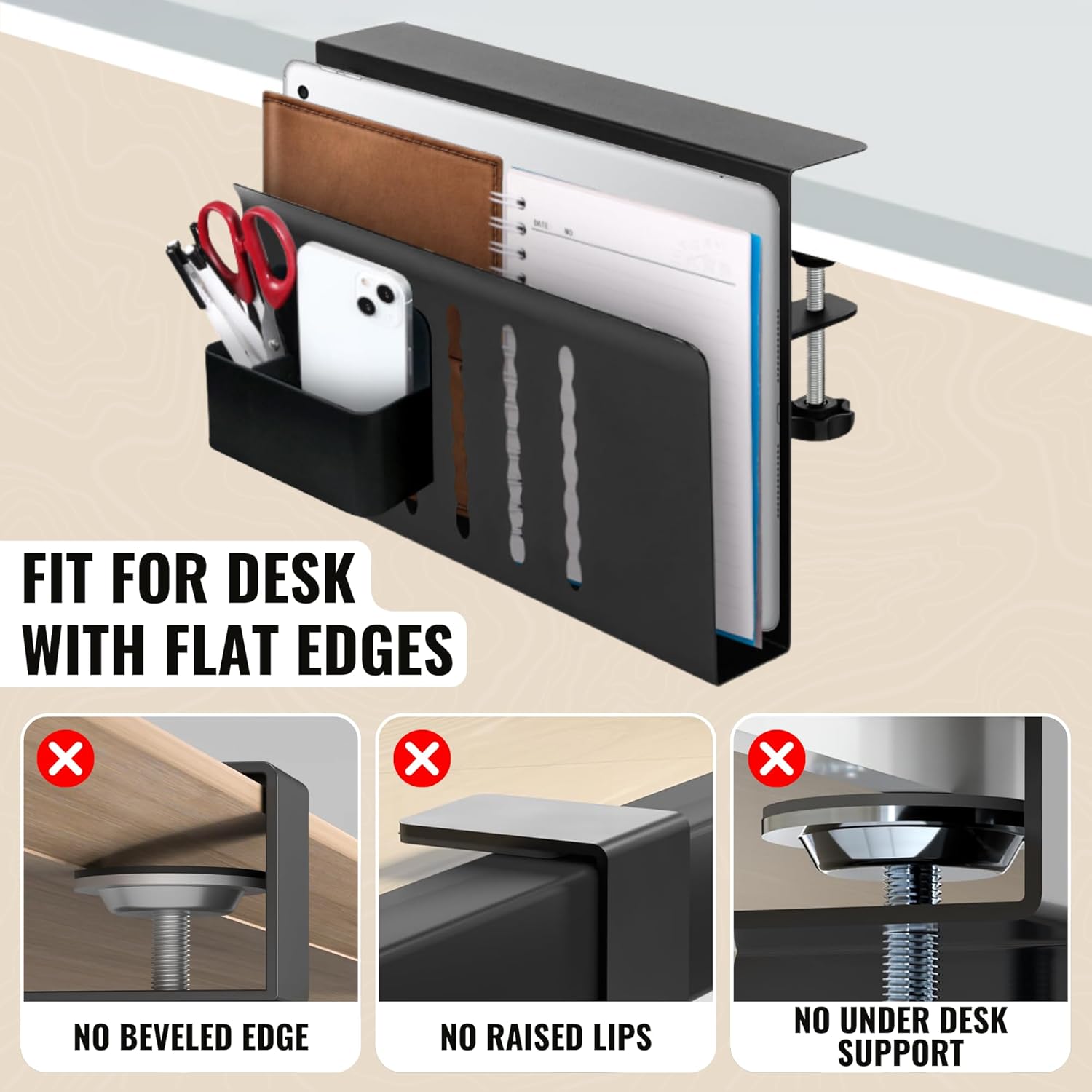 - NO-DRILL INSTALL & DESK PROTECTION: Our clamp desk organizer easy, tool-free setup with silicone cushion & rounded corners to keep your desk pristine. Check flat desk edge & size compatibility before ordering