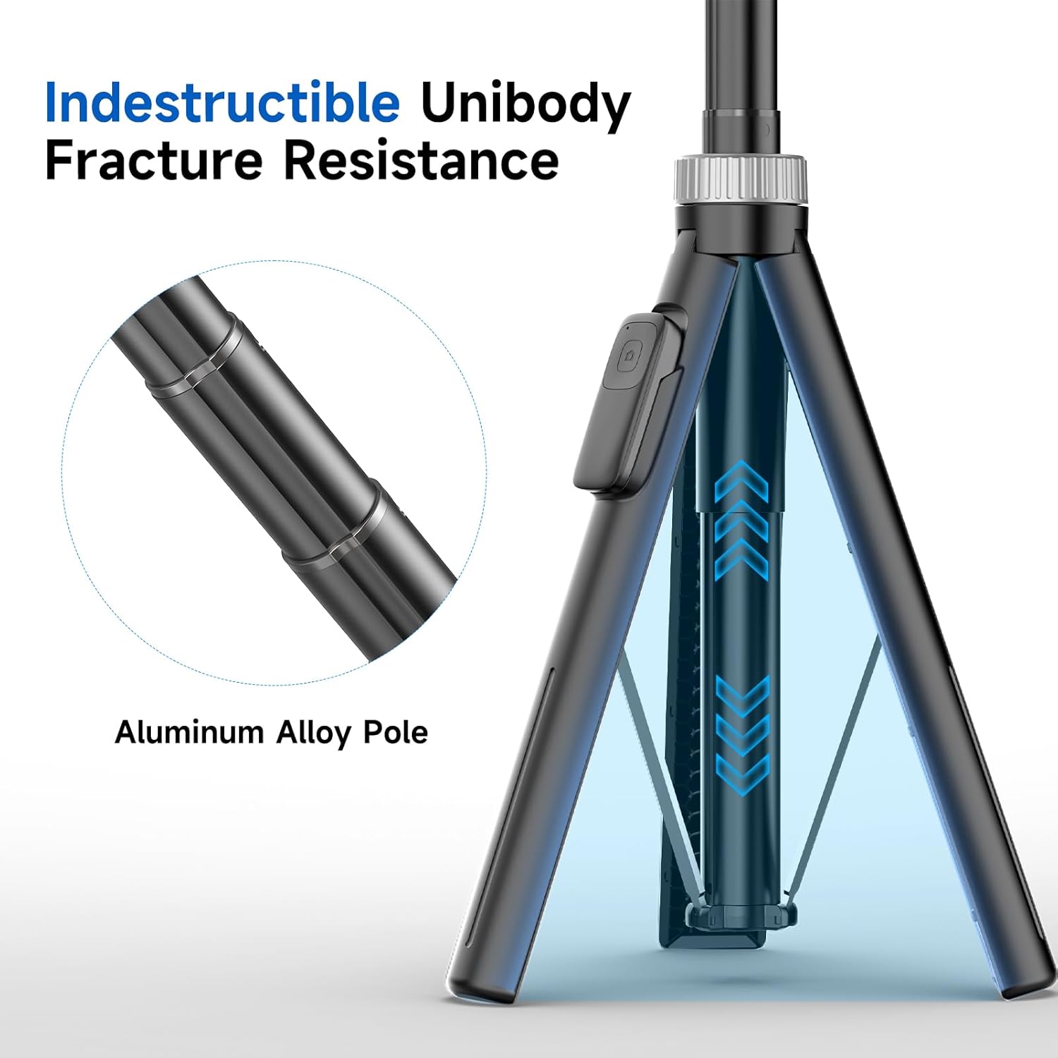- Professional Phone Tripod: With its built-in umbrella-shaped tripod structure and longer tripod counterweight base, it offers greater stability compared to other traditional selfie sticks. It can be transformed into a desktop tripod in just 1 second, and it can also be extended to stand on the ground, allowing you to capture full-body shots or group photos without holding the stick.