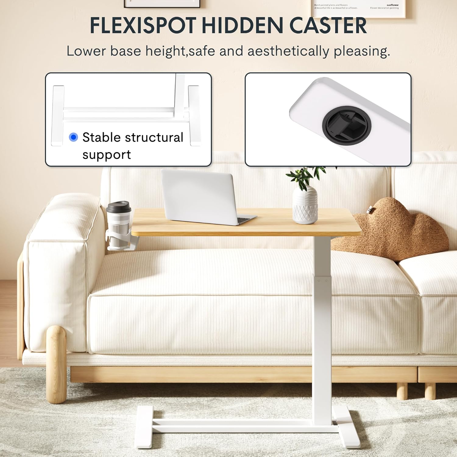 - Easy to move around & space-saving: Flexispot standing desk overbed table is equipped with 4 hidden casters to easily maneuver it anywhere you like. It’s an ideal portable workstation for any home or office! A low-profile base with smooth rolling wheels eases and tuck beneath furniture minimum 1.2" high to save space.