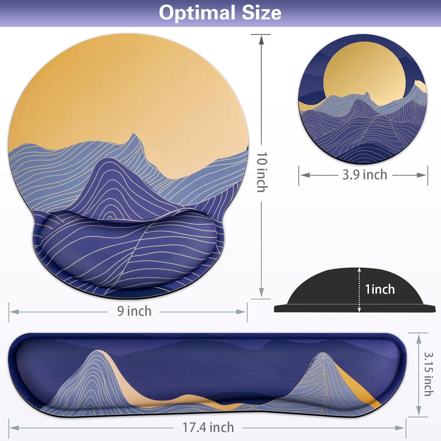 - 【3-IN-1 Keyboard Wrist Rest】-The size of the mouse pad with wrist guard is 10x9 in, the size of the keyboard wrist rest cute guard is 17.2x3.3 in,and the diameter of the cup pad is 3.9 in.The Mousepad with wrist support can be used with notebook computers,desktop computers and game consoles,and is suitable for office,home,dormitory or other occasions.