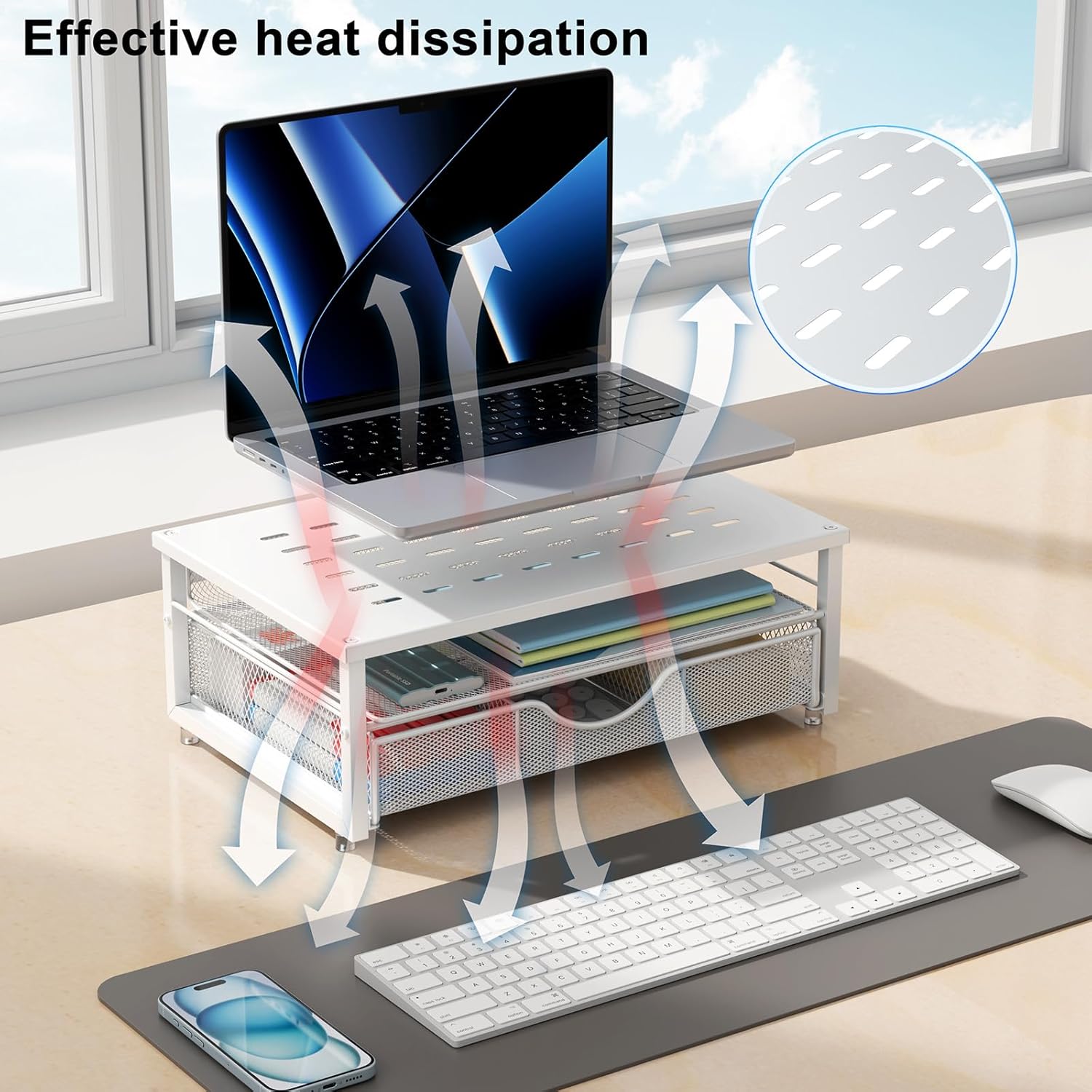 gianotter Computer Monitor Stand Riser, office organizer with Drawer, Office Organizers Storage for Classroom Office Supplies (White)