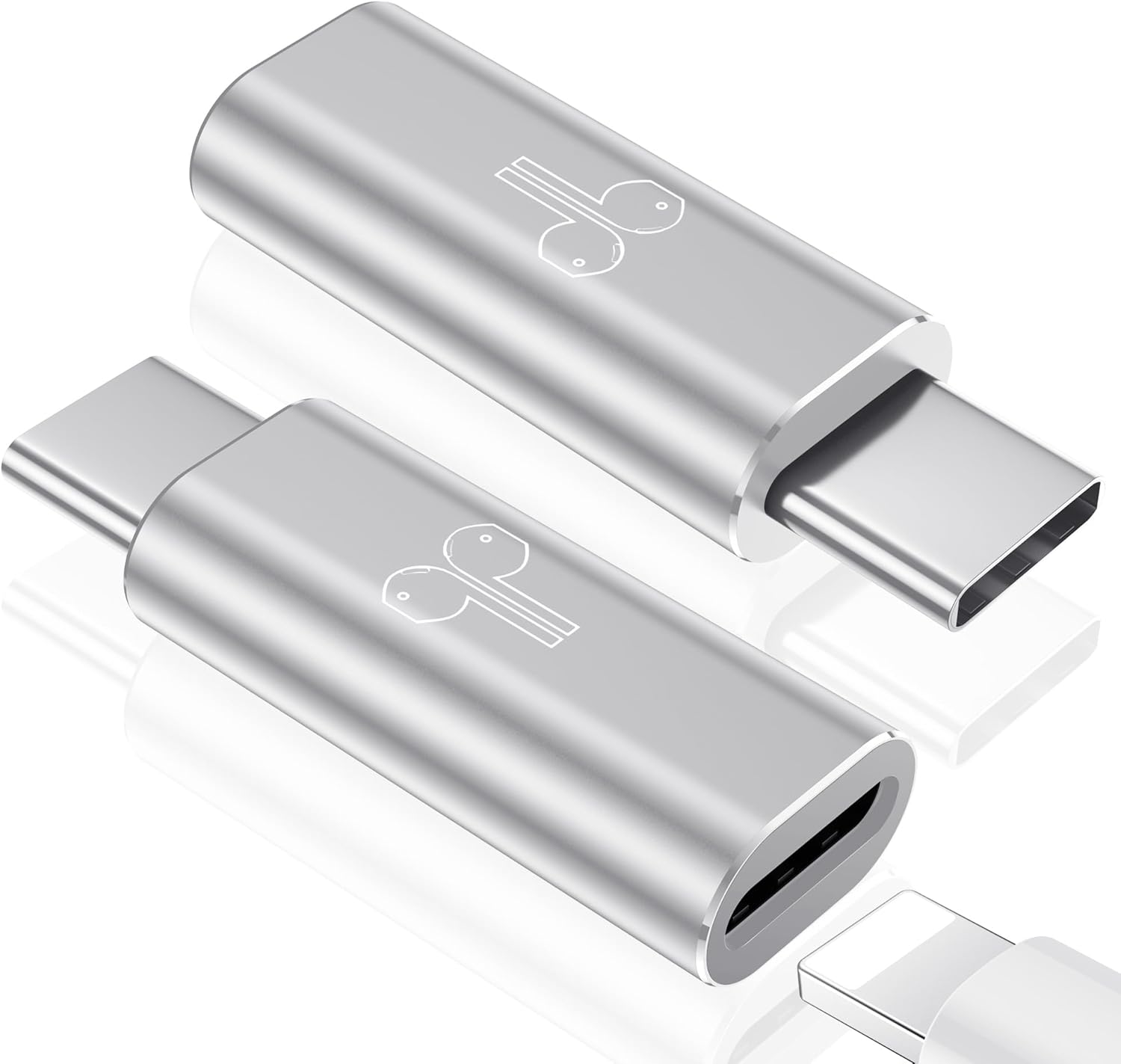 Temdan 2 Pack Lightning to USB C Adapter for iPhone 15/16 Pro/Pro Max/Plus, Support Audio/OTG Adapter, Type C Charger Connector Cable, Silver