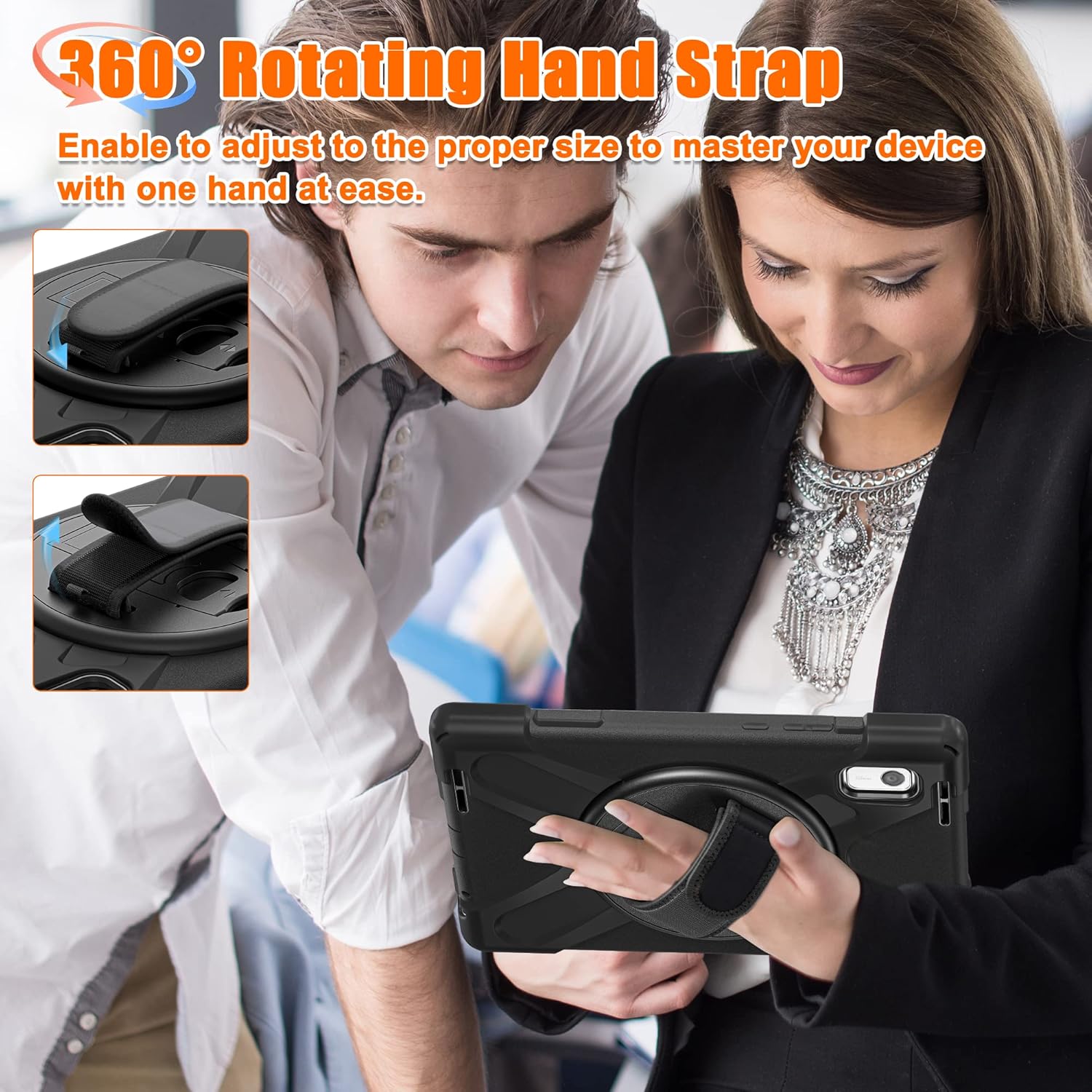 - 【Multi-Angle Viewing Experience】Built-in 360-degree rotatable kickstand enables stable portrait/landscape positioning for video calls, movie streaming, and document editing.