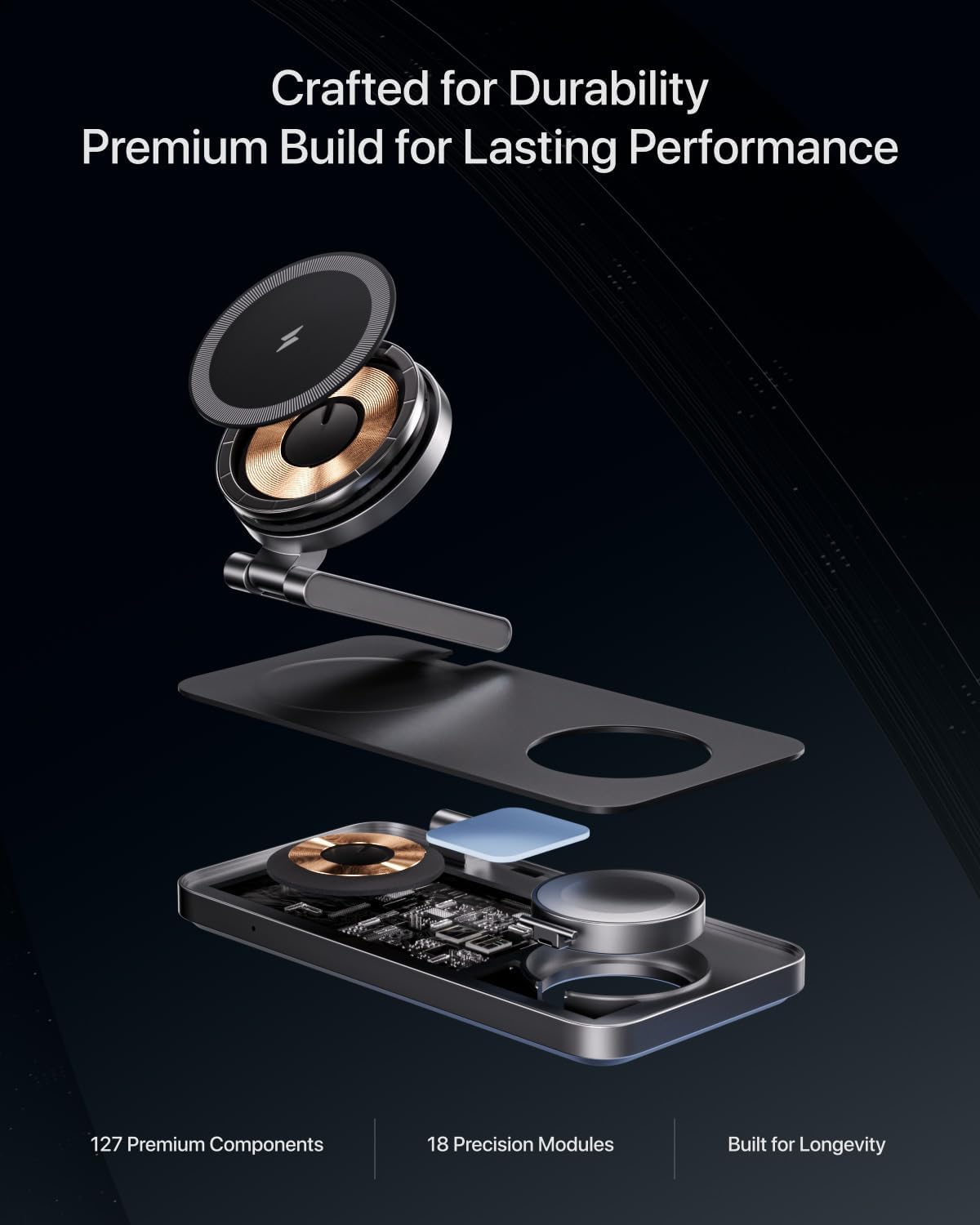 - ๐๐ข๐-๐๐๐ซ๐ญ๐ข๐๐ข๐๐ ๐๐๐ ๐ ๐๐ฌ๐ญ ๐๐ก๐๐ซ๐ ๐ข๐ง๐ :Powered by the latest nano-chip and certified by Qi2, this charger delivers up to 15W of wireless fast charging for iPhone 16โ12 series. Charge your iPhone 15 to 50% in just 48 minutes and reach full power in about 2 hours and 15 minutesโ40% faster than standard wireless chargers. Also charges Apple Watch and AirPods efficiently. Enjoy high-speed charging for all your Apple essentials without slowdowns or delays.