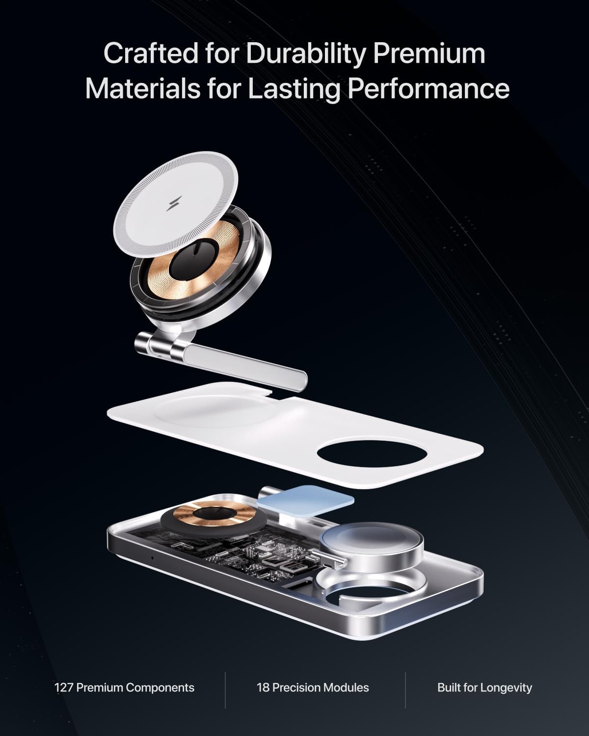 - ๐๐ข๐-๐๐๐ซ๐ญ๐ข๐๐ข๐๐ ๐๐๐ ๐ ๐๐ฌ๐ญ ๐๐ก๐๐ซ๐ ๐ข๐ง๐ :Powered by the latest nano-chip and certified by Qi2, this charger delivers up to 15W of wireless fast charging for iPhone 16โ12 series. Charge your iPhone 15 to 50% in just 48 minutes and reach full power in about 2 hours and 15 minutesโ40% faster than standard wireless chargers. Also charges Apple Watch and AirPods efficiently. Enjoy high-speed charging for all your Apple essentials without slowdowns or delays.