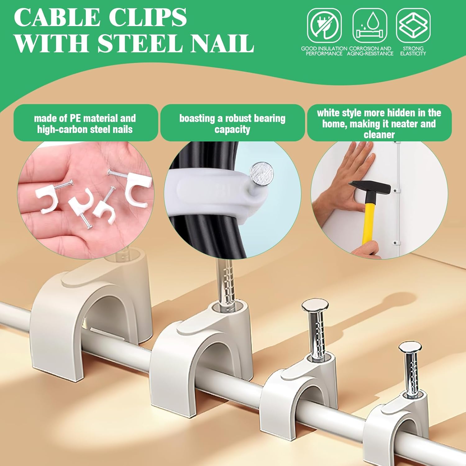 - [insulation Material] The coax cable clips are high-quality plastic and steel nails and the u nail electrical cable staples are made of carbon steel with a graphite metallic finish, providing ideal strength and durability, which will not easily rust, corrode, or break,even after prolonged use in high or low temperatures. The electrical cord staples are UV resistant, offering a safety and efficiency of your cable setting, making cable clips perfect for outdoor use as well.