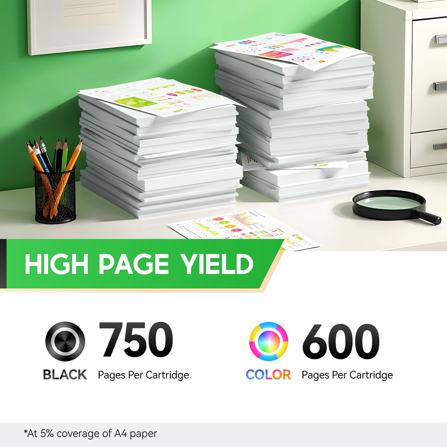- High Page Yield: 600 pages for PGBK & 750 pages Blcak & Color ink cartridge (A4, 5% Coverage), with High Yield Version 230/231.