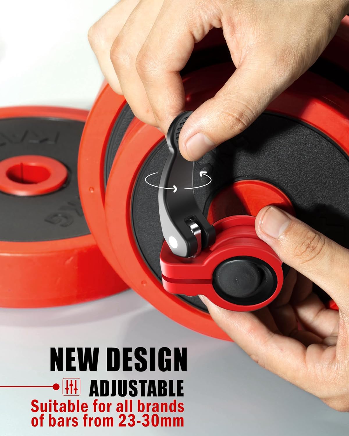 - Wide Size Adjustment Range:Adjustable barbell clamps fit 0.9-1.18inch bars with precise millimeter control. Self-tightening mechanism ensures secure grip that won't loosen over time during workouts.